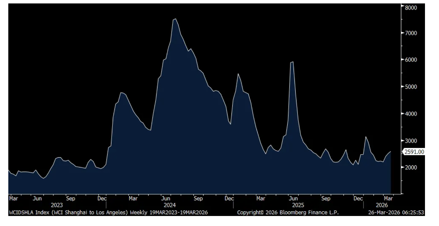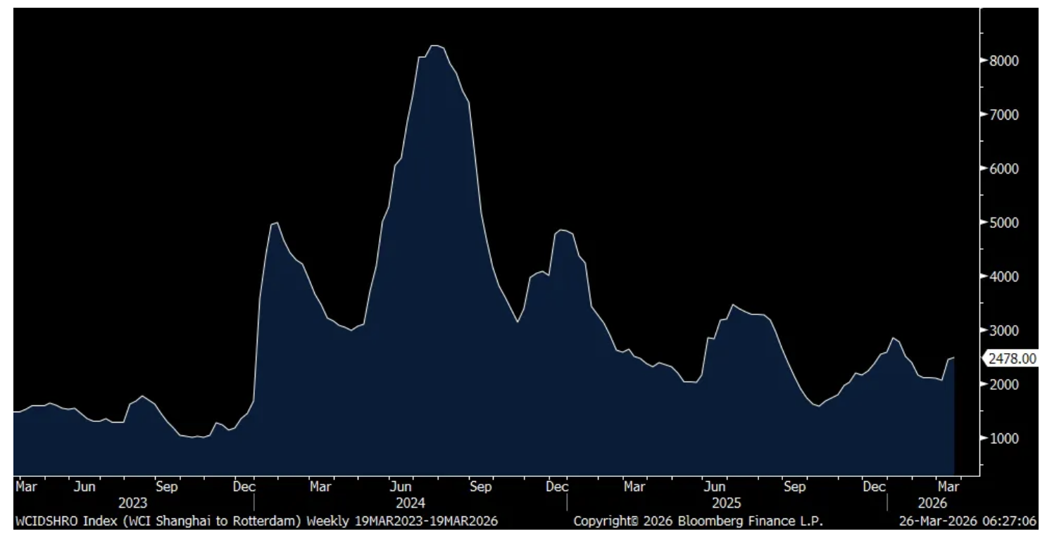 Container shipping prices continue to rise but as the Houthi’s haven’t yet disrupted the Red Sea, they still remain relatively muted. The Shanghai to LA trip rose by $95 to $2,686 to the highest since mid January. The route to NY rose by a similar amount to $3,393 and to Rotterdam, Netherlands from Shanghai too to $2,552.