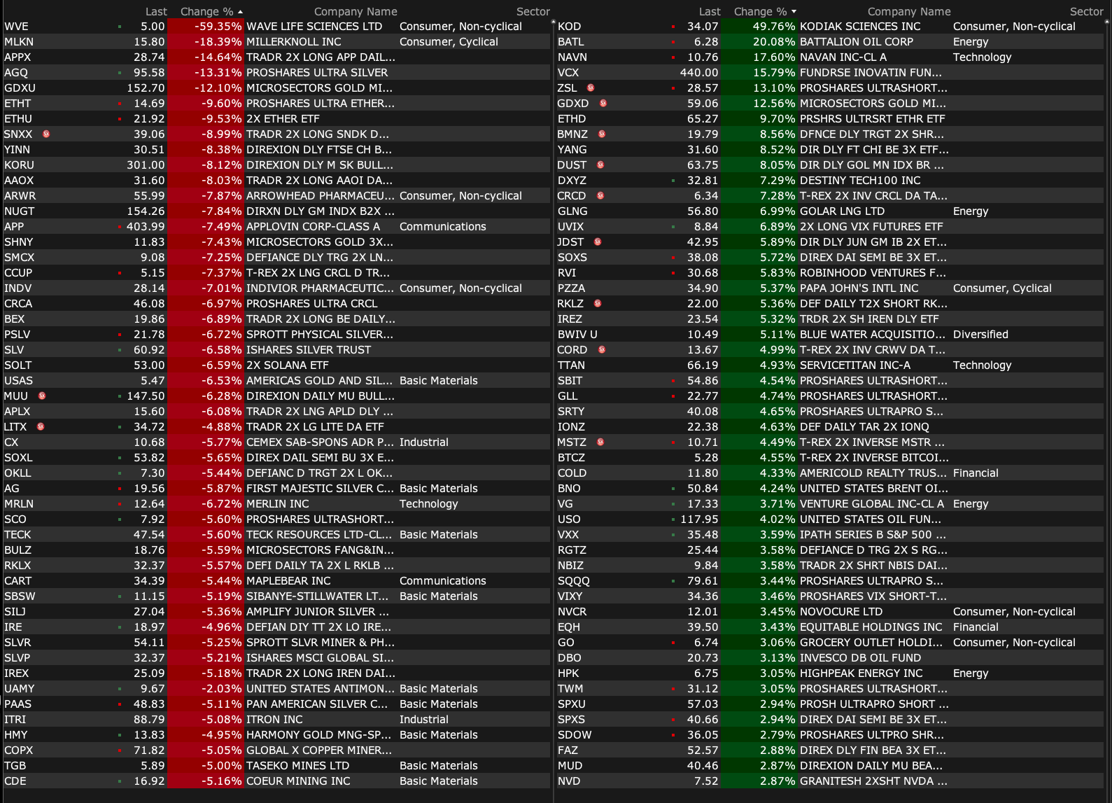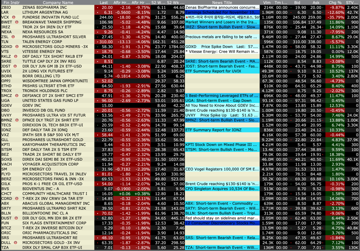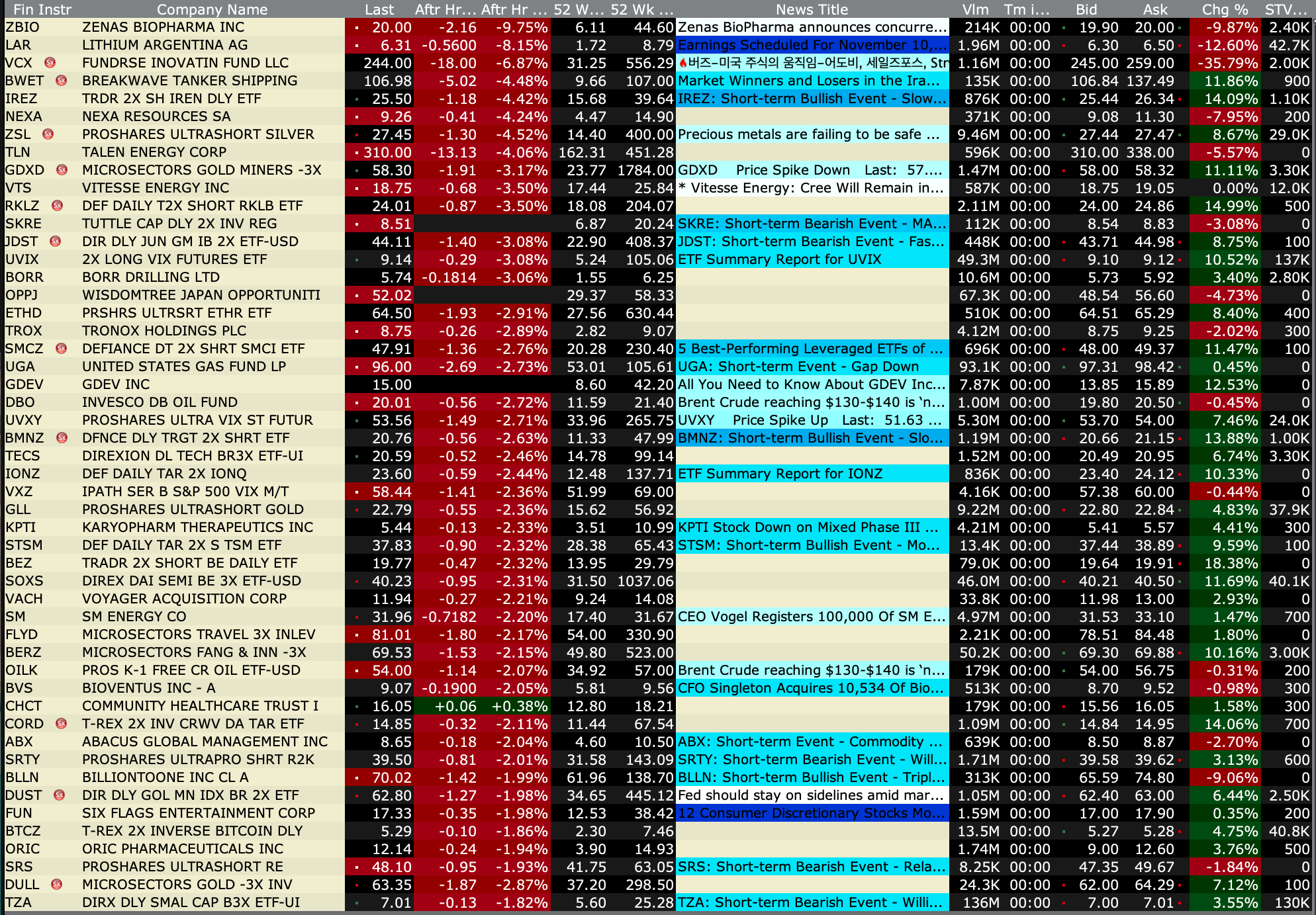After Hours % Decliners