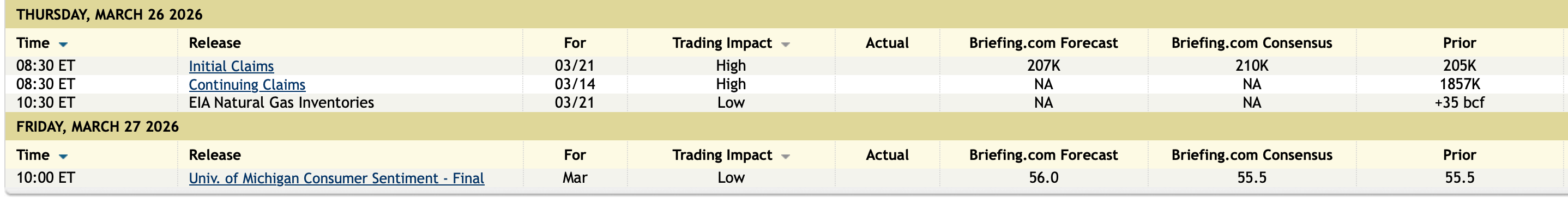 Economic Calendar:
