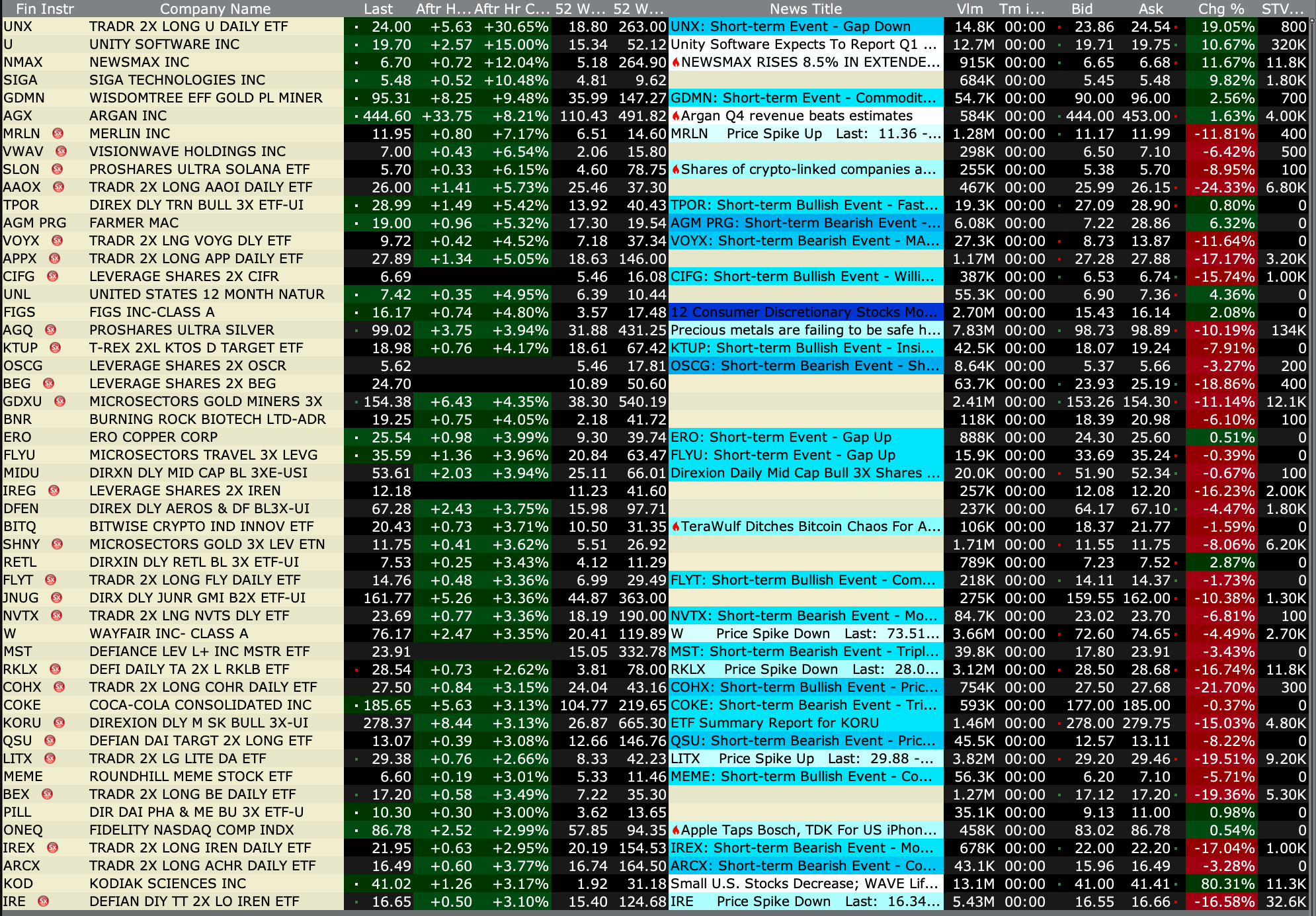 After-Hours % Advancers