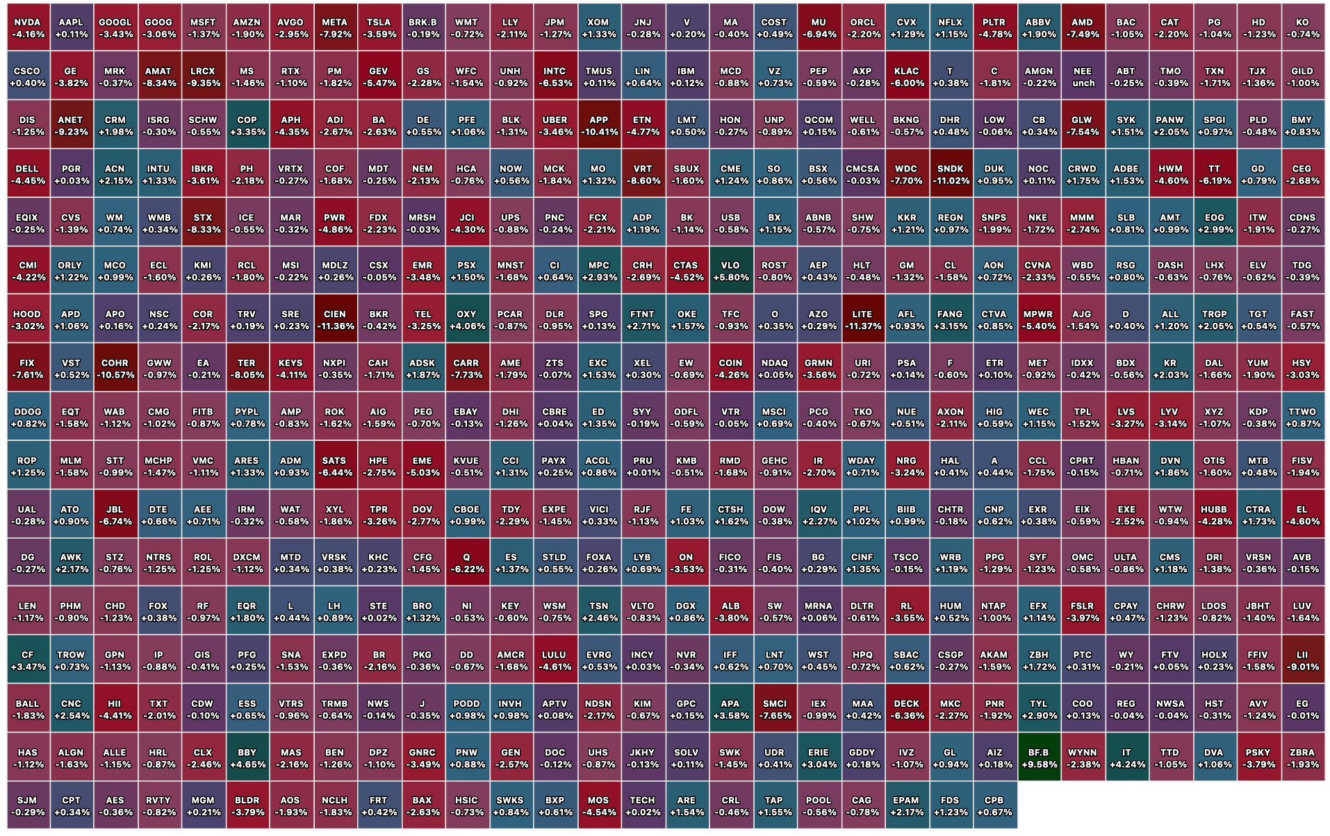 Closing S&P 500 Heat Map