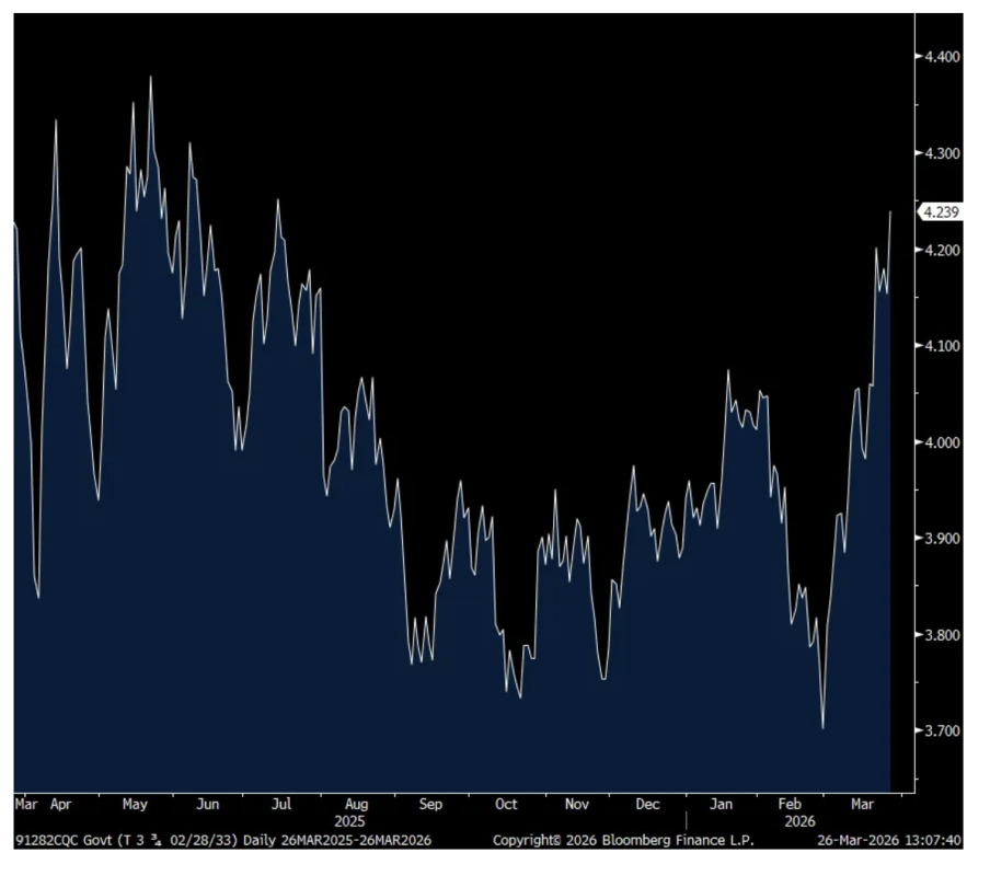 In response, the 7 yr yield is rising to the highest level since July 2025.