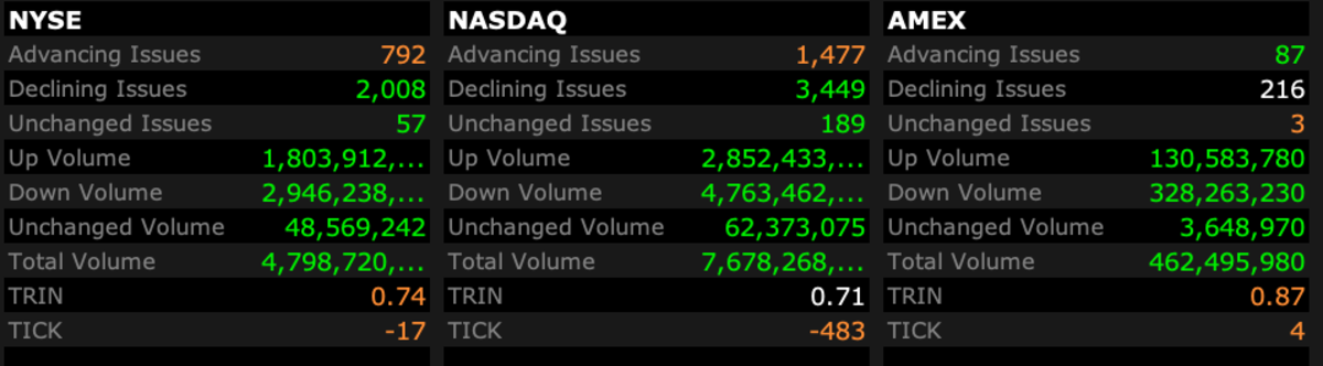 - NASDAQ volume 16% below its one-month average