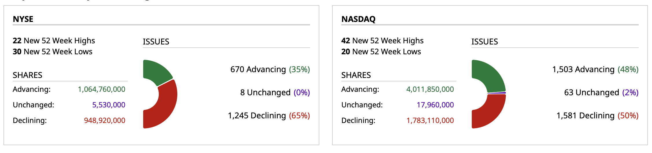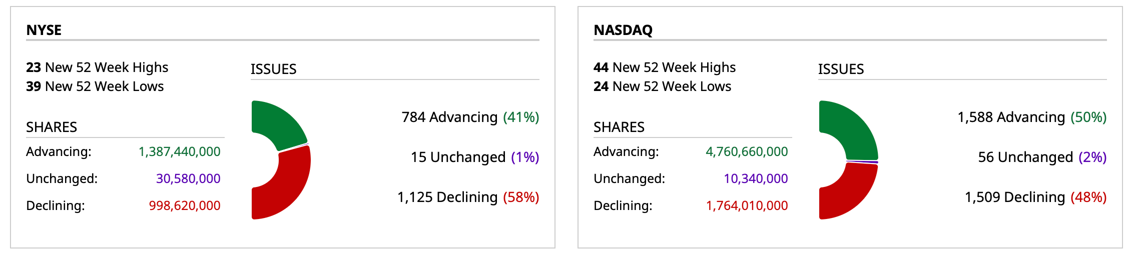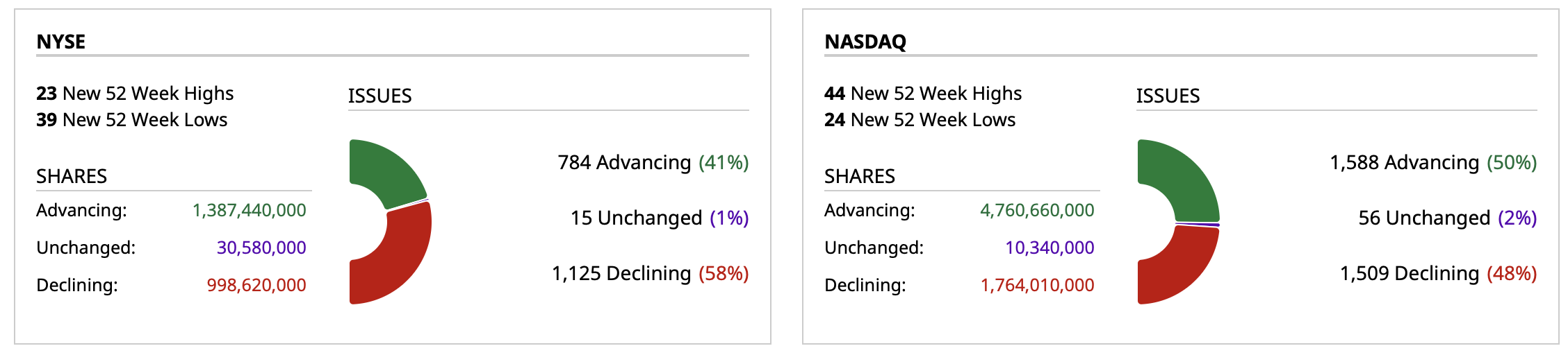 - NYSE volume 10% below its one-month average