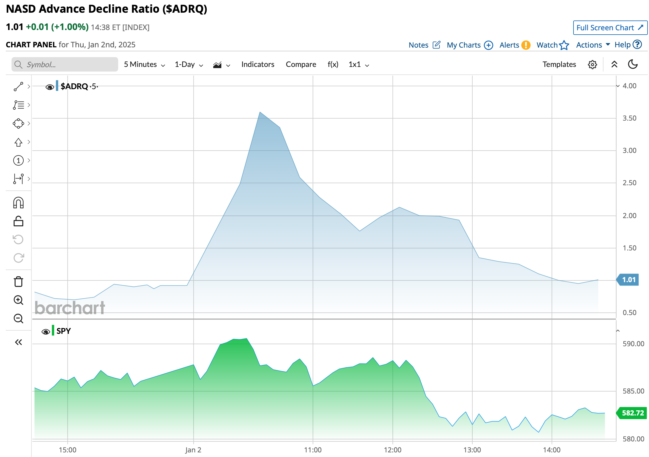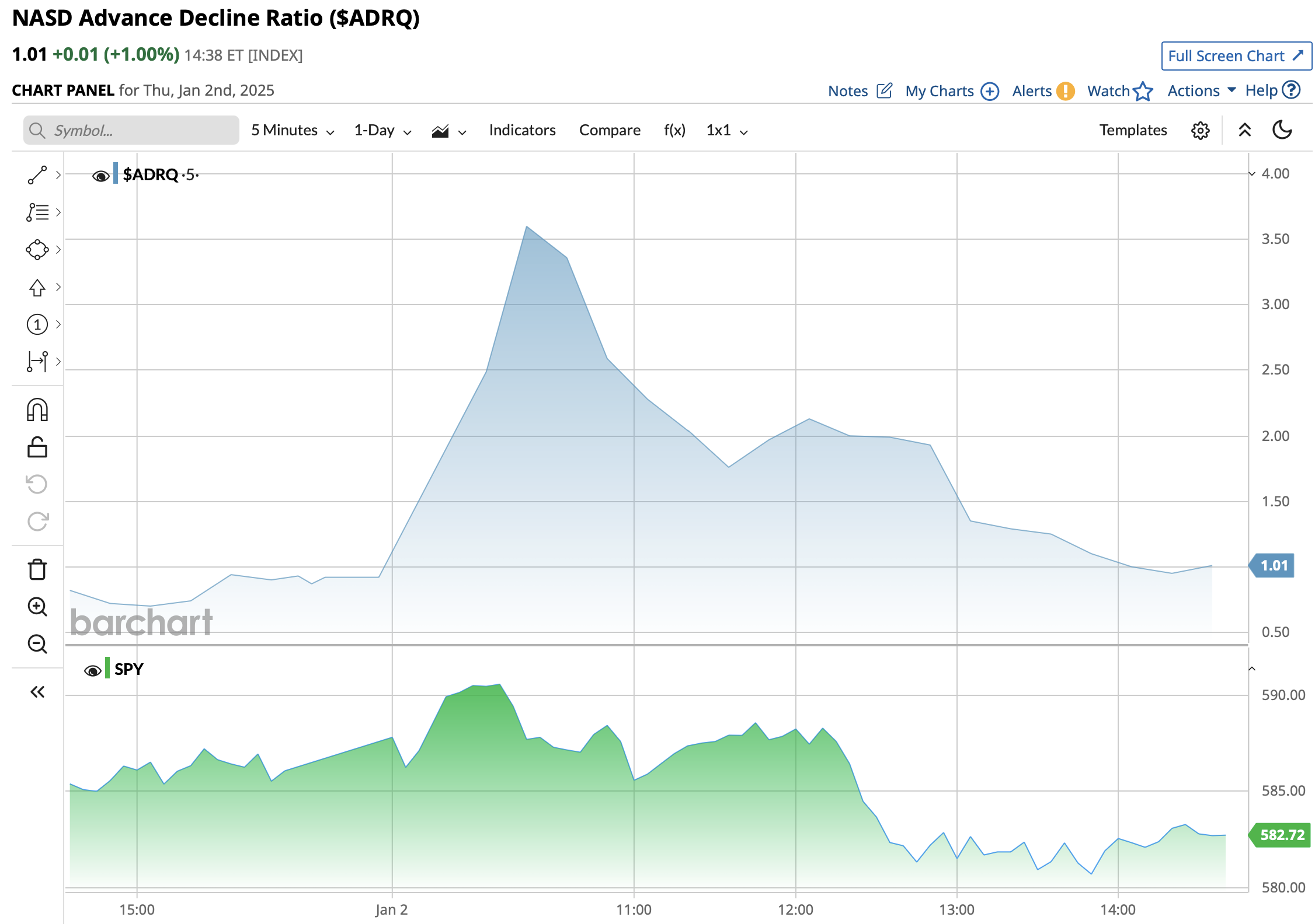 Just look at today's intraday chart of the S&P Index.