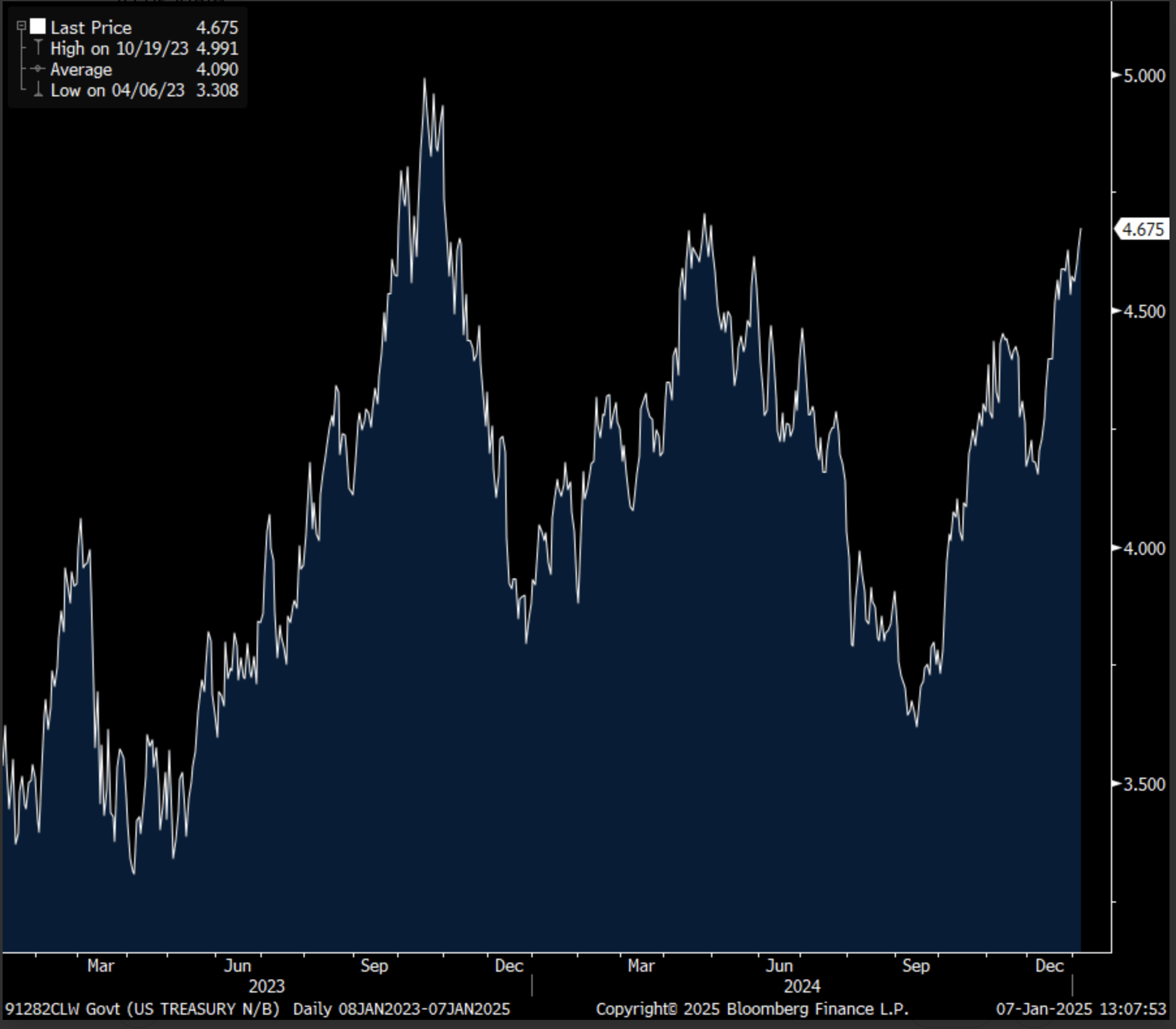 With the 10-year Treasury yield reaching multi-month highs, my baseline expectation is that January 2025 could represent an important top in stocks — much like it did 53 years ago in 1972.