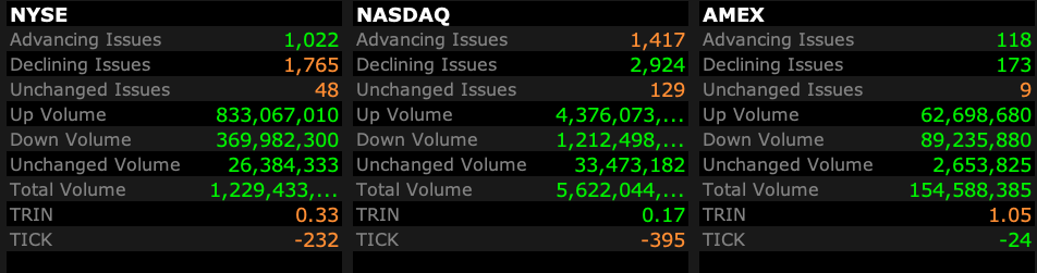 The speculation continues. 75% of the volume on Naz is on the upside today. In names you have never heard of. Current volume is 8.8 billion shares. Yesterday traded 9.8 bil all day. Today should be well over 10 bil.