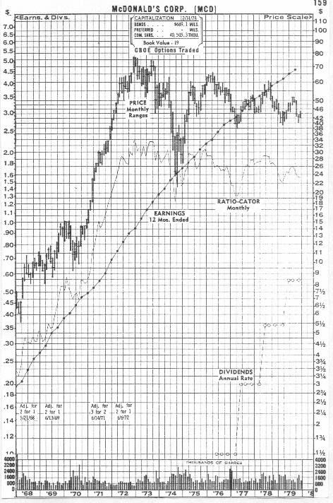 It was this long period of sustained underperformance that ruined growth stock managers and which set up the eventual bottom in growth stocks. The chart of McDonald's is classic (but by no means unique); the stock went from 75 to 40 from 1973 until 1979 -- without the company missing a single quarterly earnings number. Even more catastrophically, McDonald's P/E multiple went from 75 times trailing earnings in 1973 to less than 10 times earnings in 1979 despite the fact that the company maintained a 25% earnings growth rate, compounded, throughout the entire period.