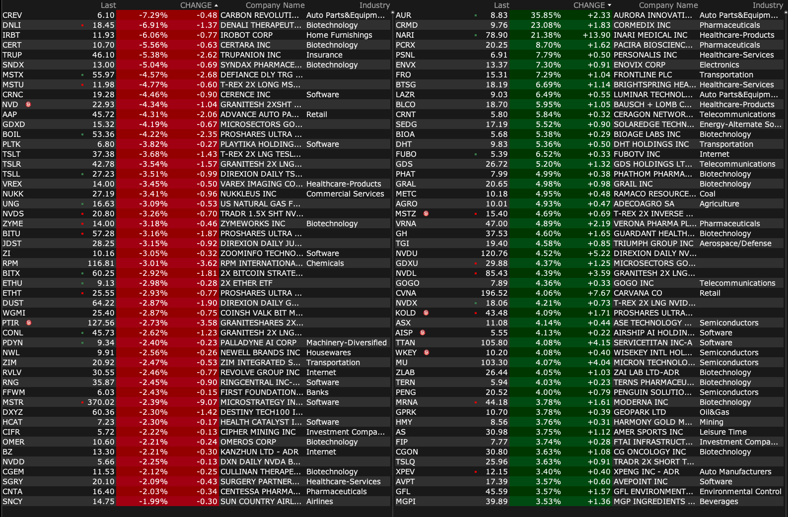 -RZLT +3.1% (receives Breakthrough Therapy Designation from FDA for Ersodetug in the Treatment of Hypoglycemia Due to Congenital Hyperinsulinism)