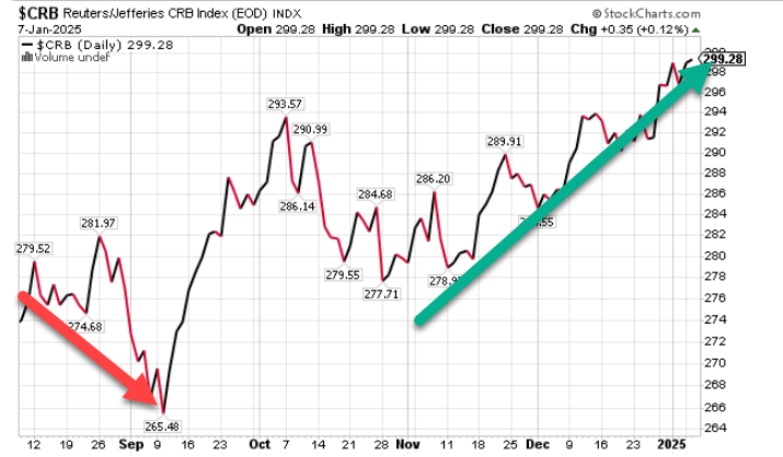 1. Not only is service inflation percolating (from yesterday's data), but commodities inflation ripping higher in last few months: