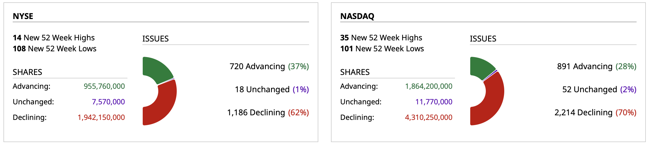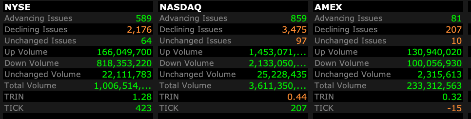 - Nasdaq volume is 27% above its one-month average