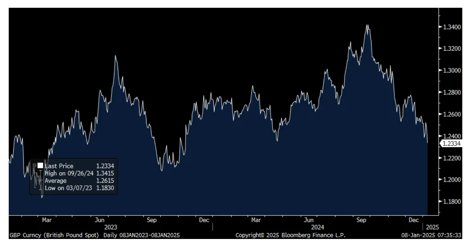 By the way, back to the UK, even with the continued rise in yields, the pound continues to weaken and this market response is something you usually see historically in emerging markets. It's also a big thumbs down on the new Starmer government.