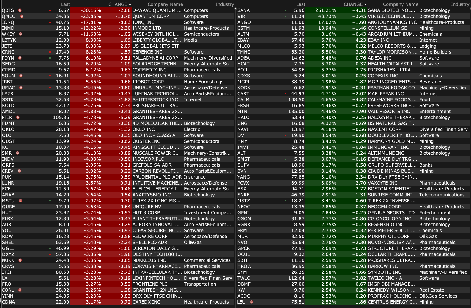 -QSI -13% (Quantum computing related names lower following NVDA CEO comments)