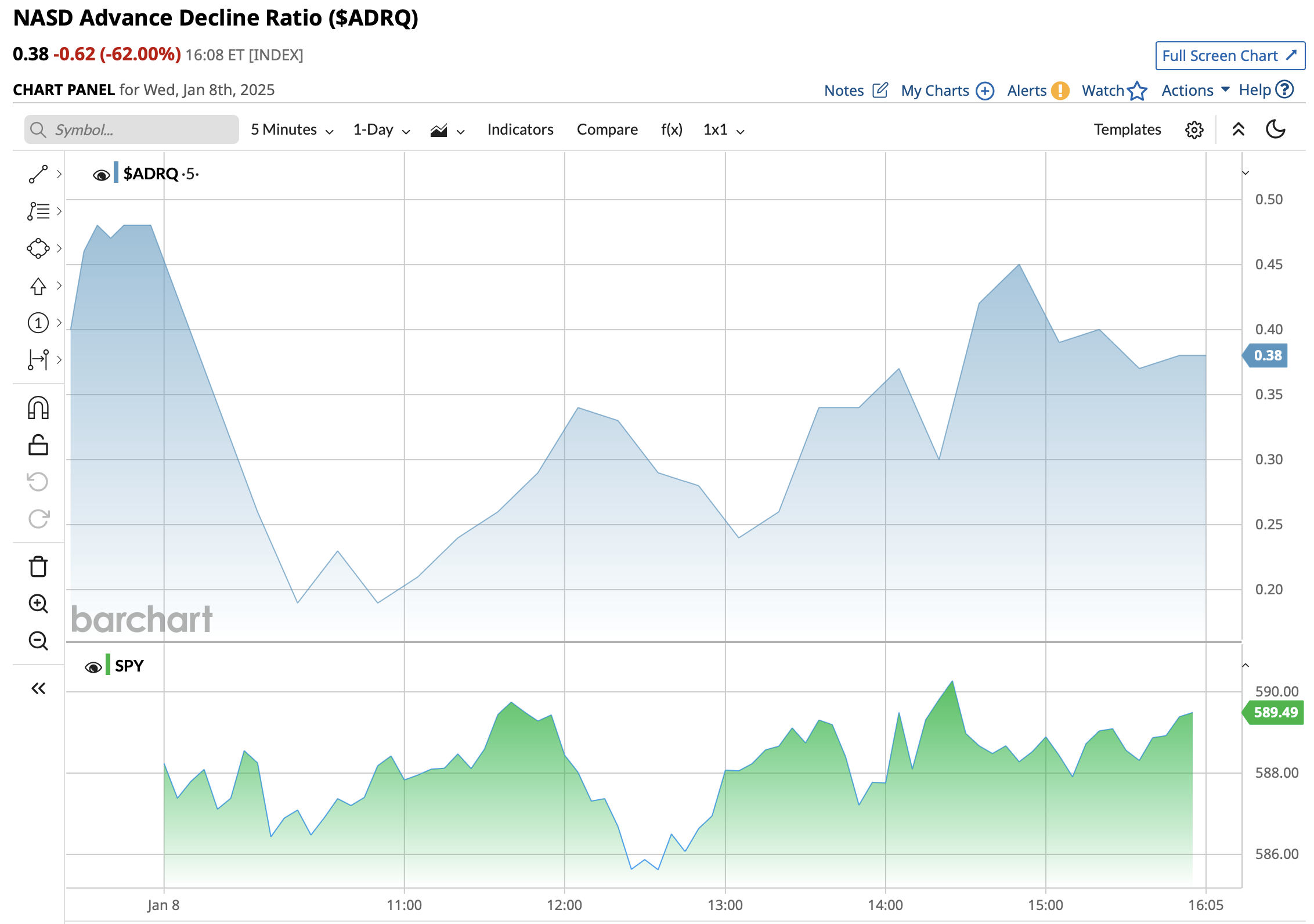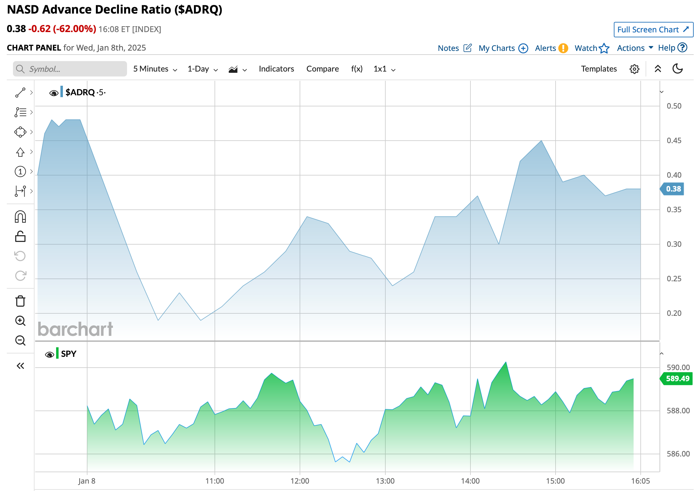- NASDAQ volume 10% above its one-month average