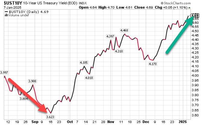 The 2 yr yield rallied on his comments but as seen since the Fed first cut 50 bps in September, long rates are still higher with the 10 yr at 4.70% as of this writing.