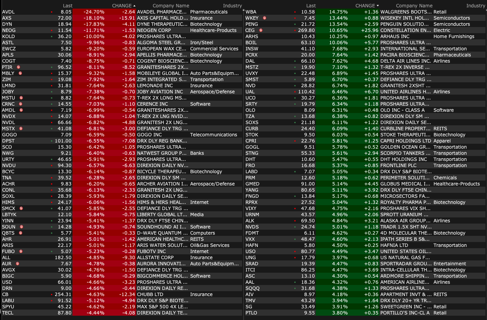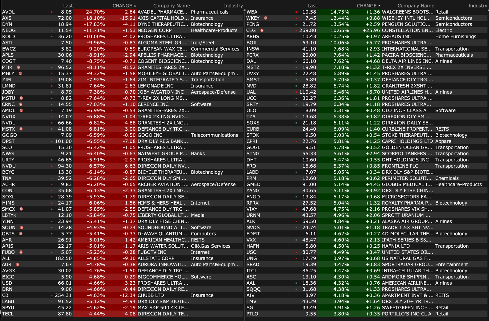 -WBA +11% (earnings, guidance)