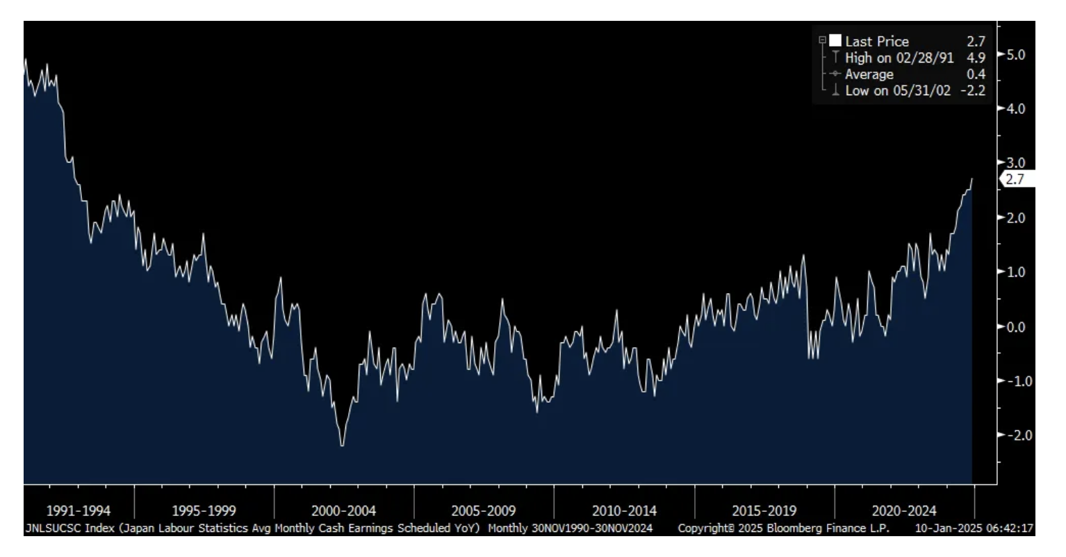 6)Base pay in Japan rose 2.7% y/o/y in November vs 2.5% in October and that is the quickest pace since November 1992.