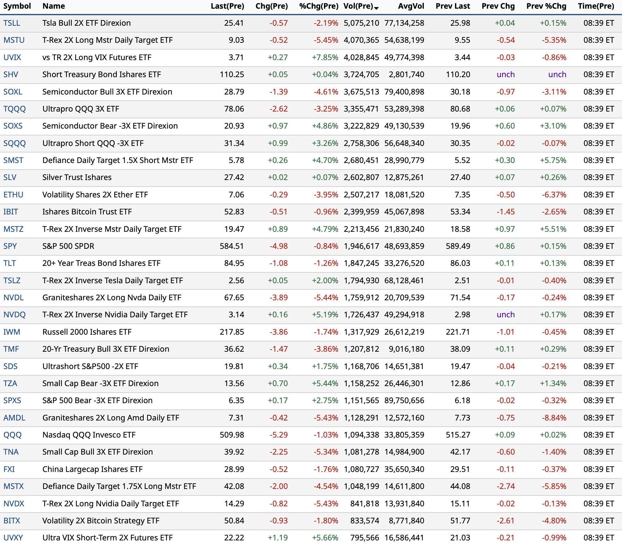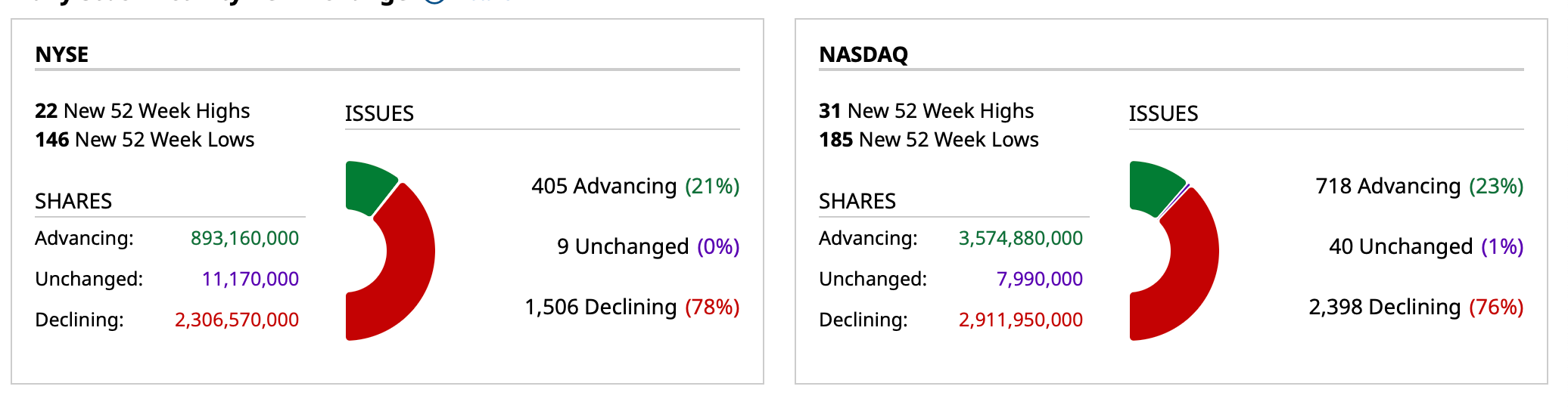 - New York Stock Exchange volume is 30% above its one-month average;