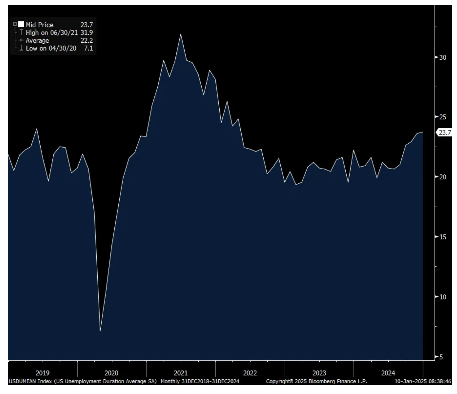 A fly here is that it’s taking longer to find work as the average duration of unemployment rose to 23.7 weeks, the highest since April 2022.
