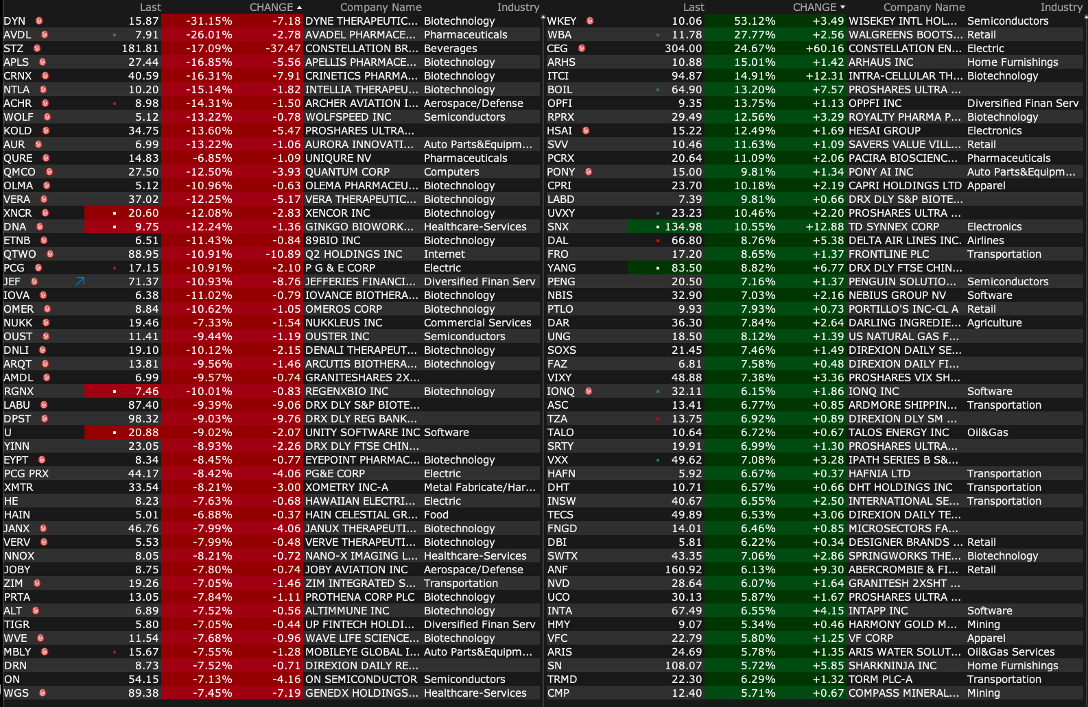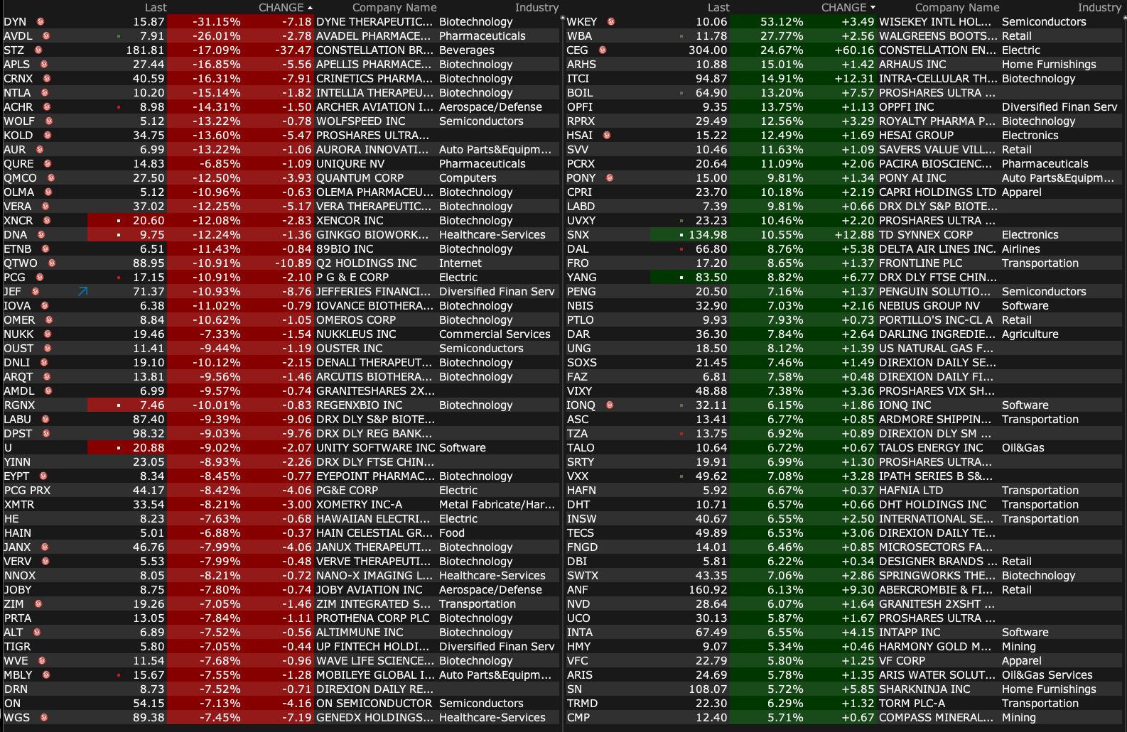 -NTLA -2.8% (anticipated 2025 Milestones and Strategic Reorganization to include ~27% workforce reduction in 2025 in effort to prioritize advancement of Late-Stage Programs, NTLA-2002 and Nexiguran Ziclumeran)