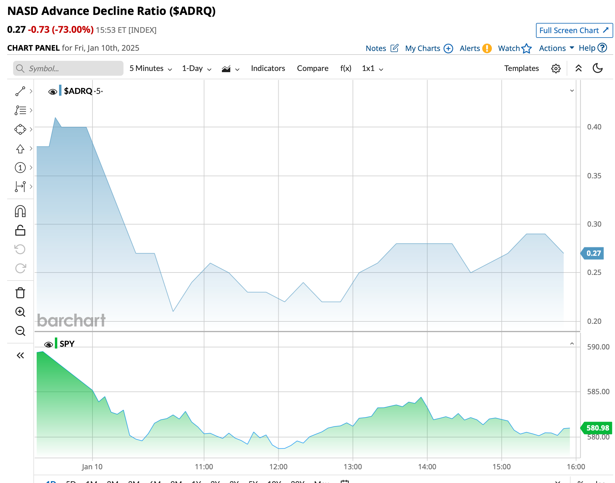 - NASDAQ volume 6% above its one-month average