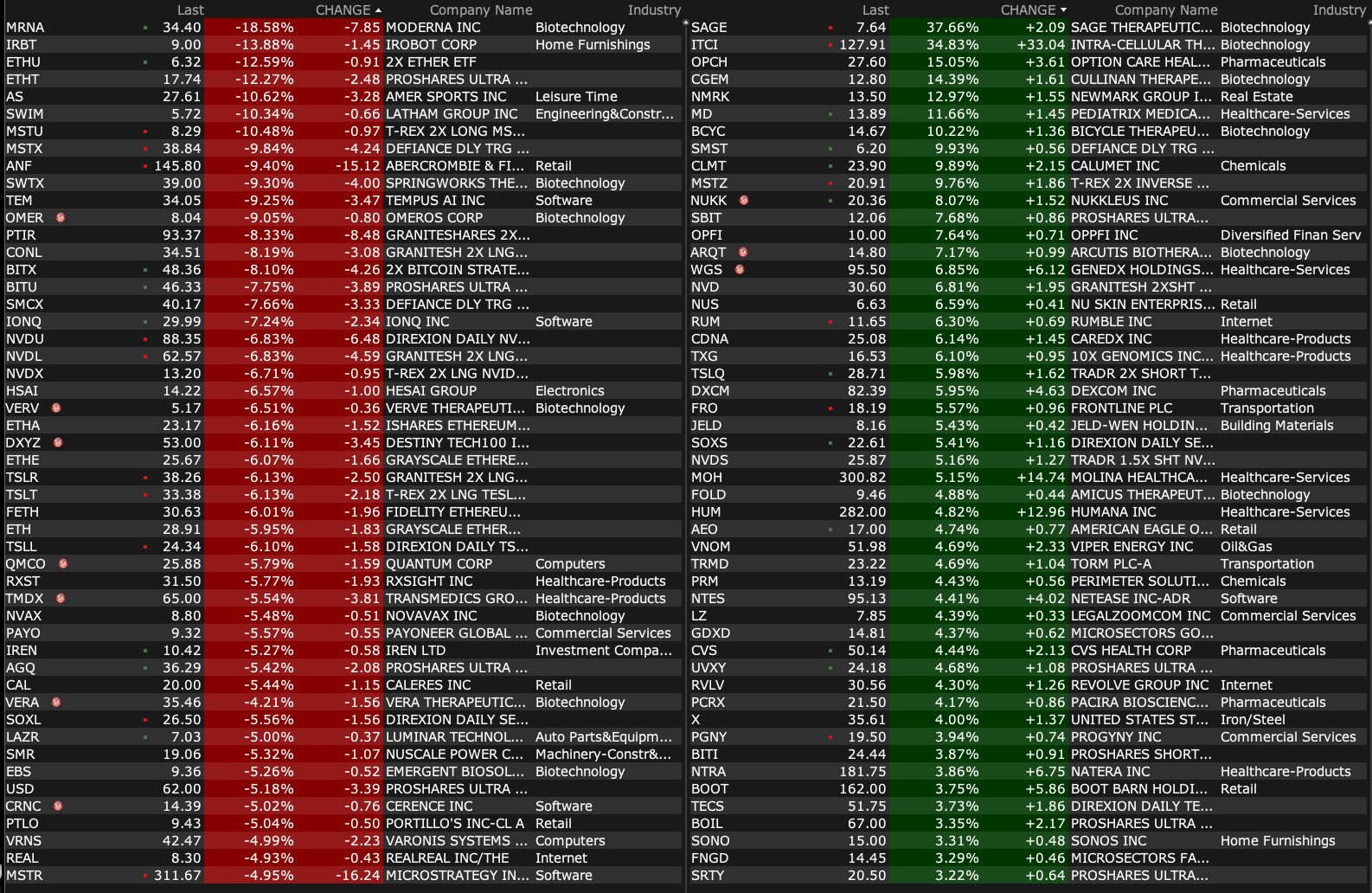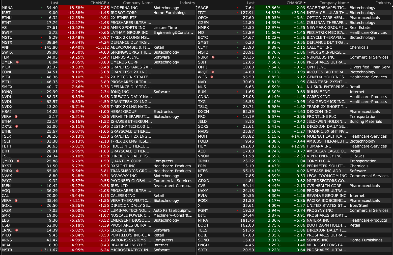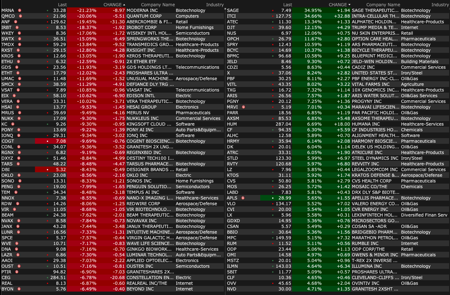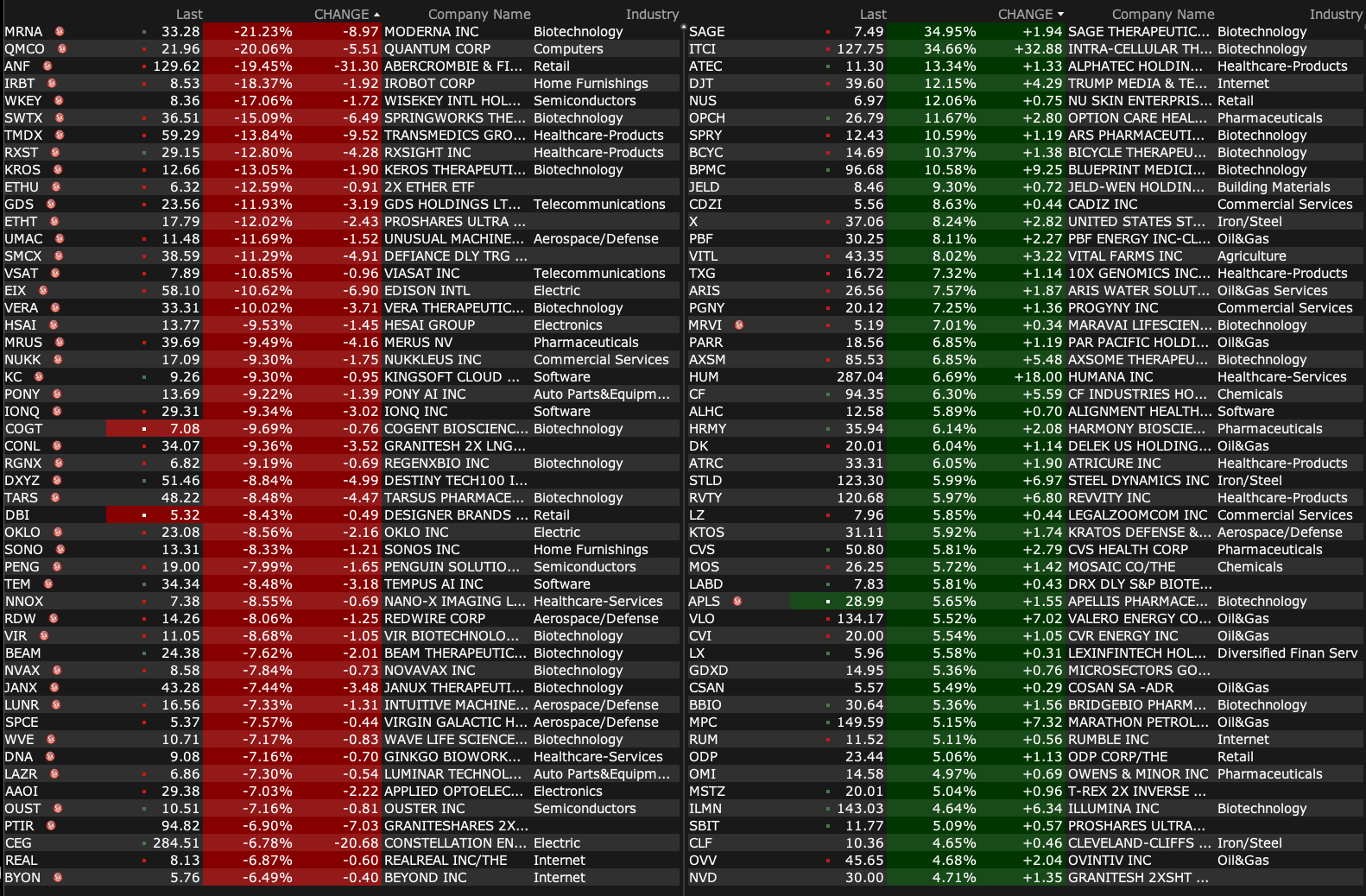 -MRNA -20% (reports prelim FY24 product sales, cuts FY25 guidance)
