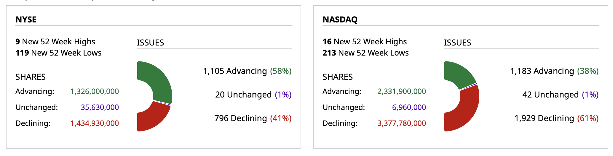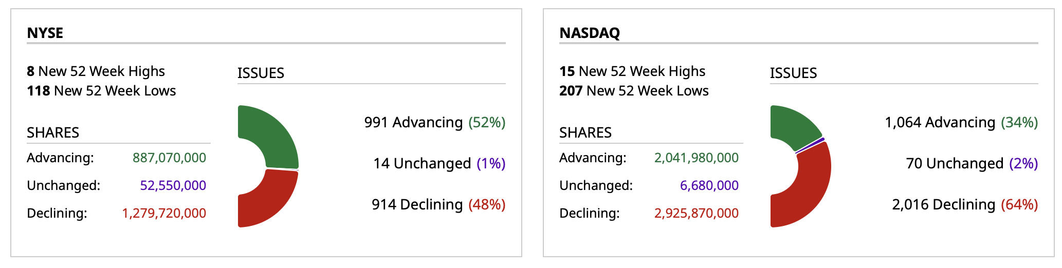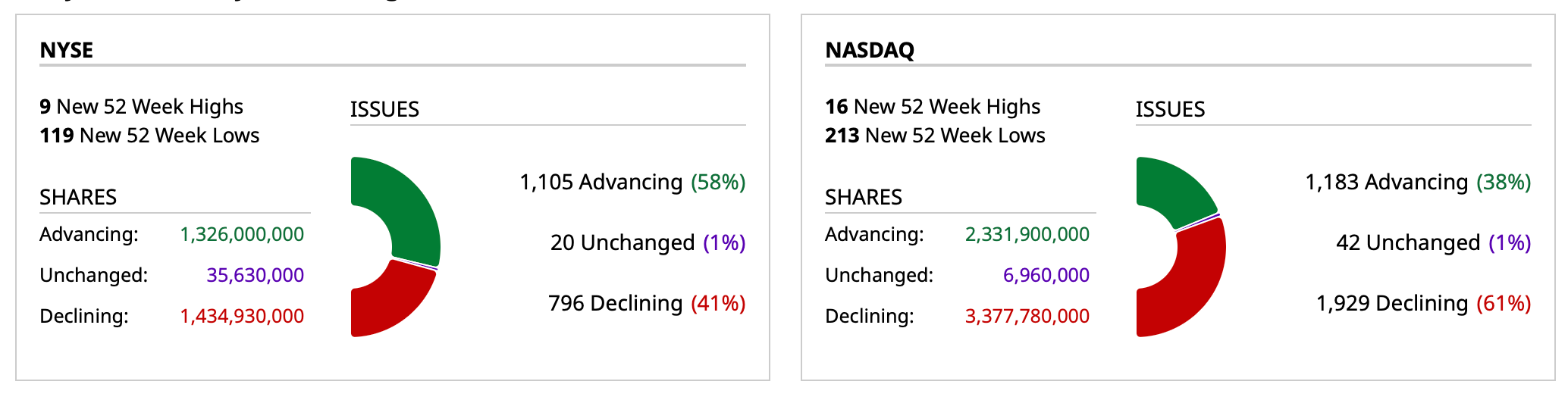 - NASDAQ volume 6% below its one-month average