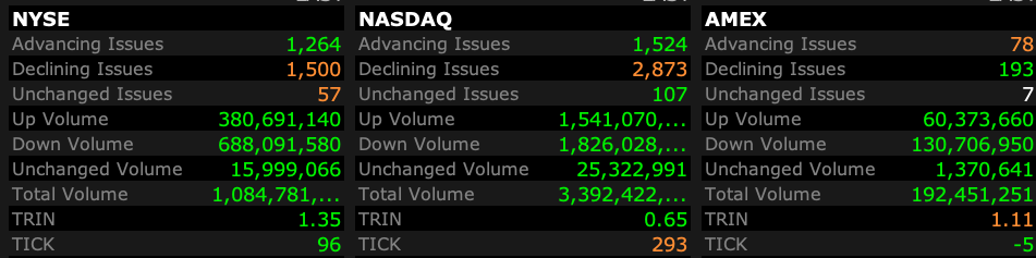 A nice rally off the morning lows but breadth stinks up the joint and volatility continues apace.