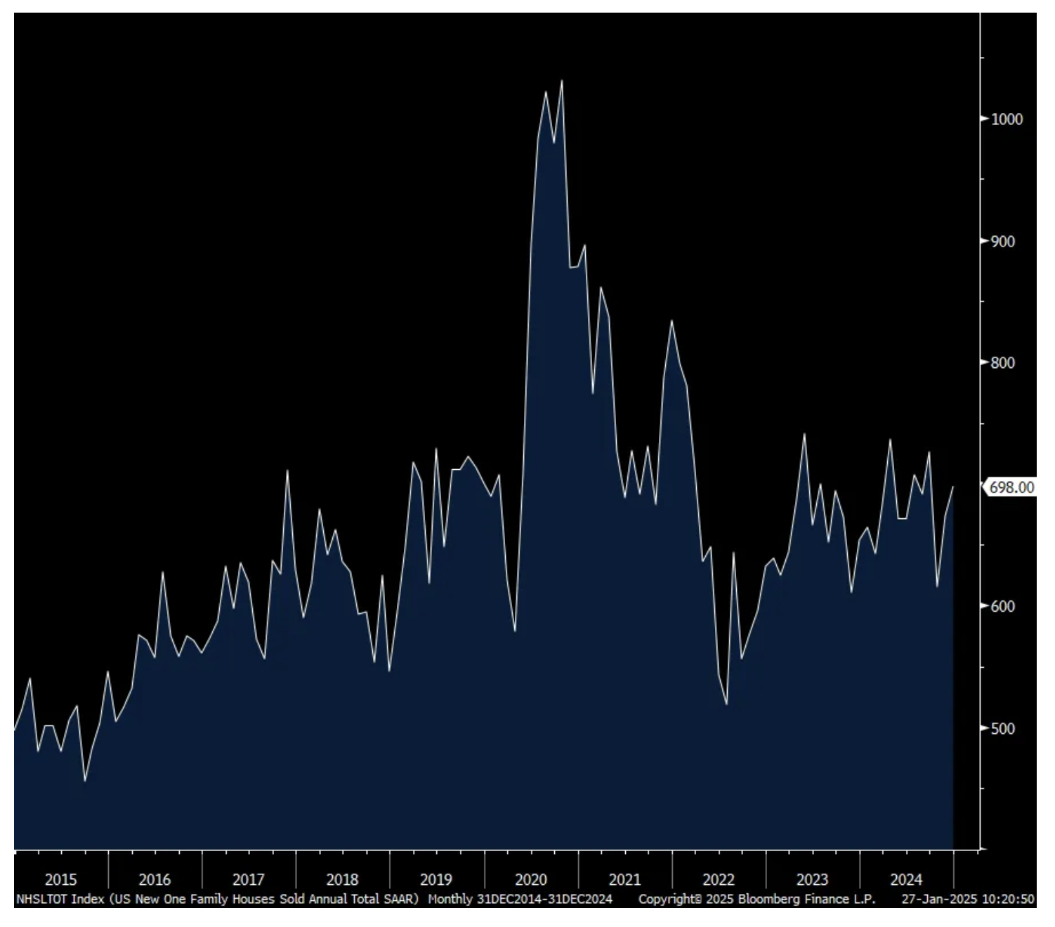 Bottom line, the 698k figure compares with the 2024 average of 682k and 666k in 2023 and 685k in 2019. We know the challenges and opportunities of the US housing market. On the demand side, the market needs more inventory but with mortgage rates back at 7%ish, affordability including the high price of homes, remains a challenge. On the supply side, the NAHB said a few weeks ago, “Land is expensive and financing for private builders remains costly.” That though has been the opportunity for the larger publicly traded builders who have the balance sheet to discount product, buy down mortgages and purchase land.