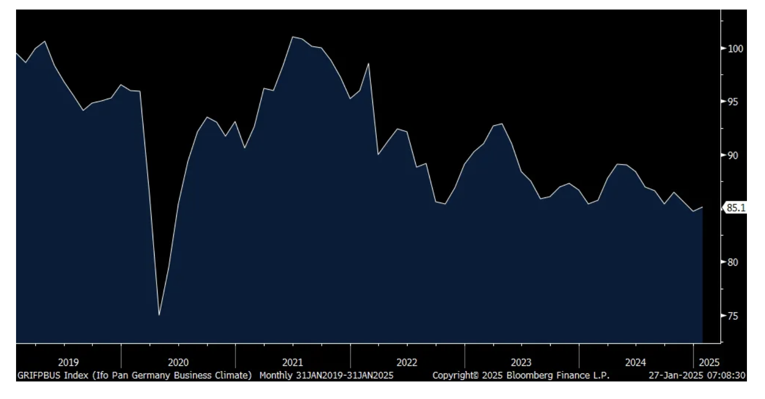 The main thing of note in Europe was the January IFO German business confidence index which did lift to 85.1 from 84.7, the lowest since the 2020 Covid shutdowns and above the estimate of 84.8. The Current Assessment rose 1 pt while Expectations fell a touch to 84.2. In their succinct way, IFO said "Companies continue to be pessimistic." Manufacturing remains their main pain point, along with global trade.