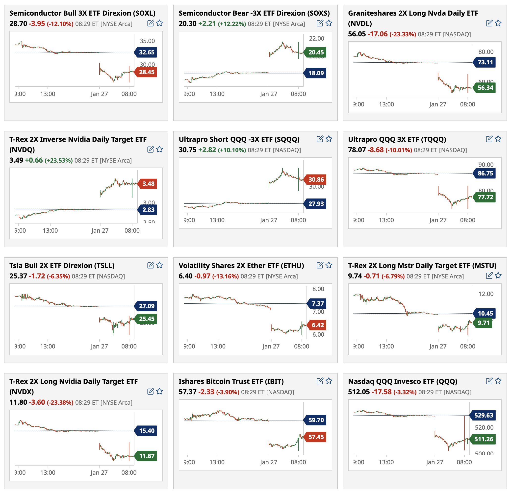 -PLUG -3.9% (Trump Administration freezes DOE spending, loans as part of review; Seaport Global Securities Cuts PLUG to Sell from Neutral, price target: $1)