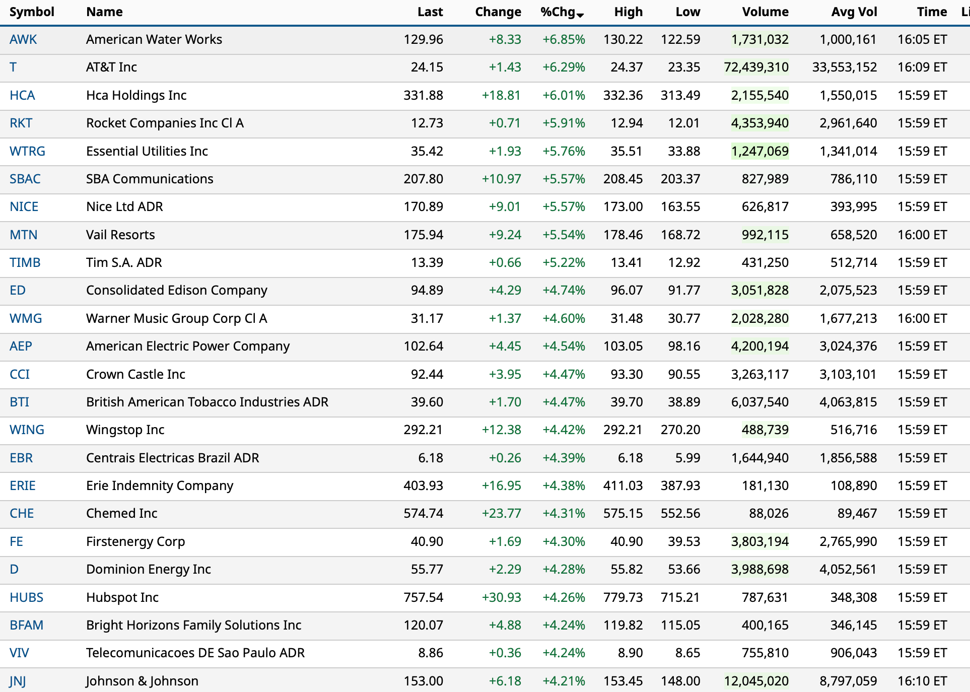 NYSE volume 36% above its one-month average.
