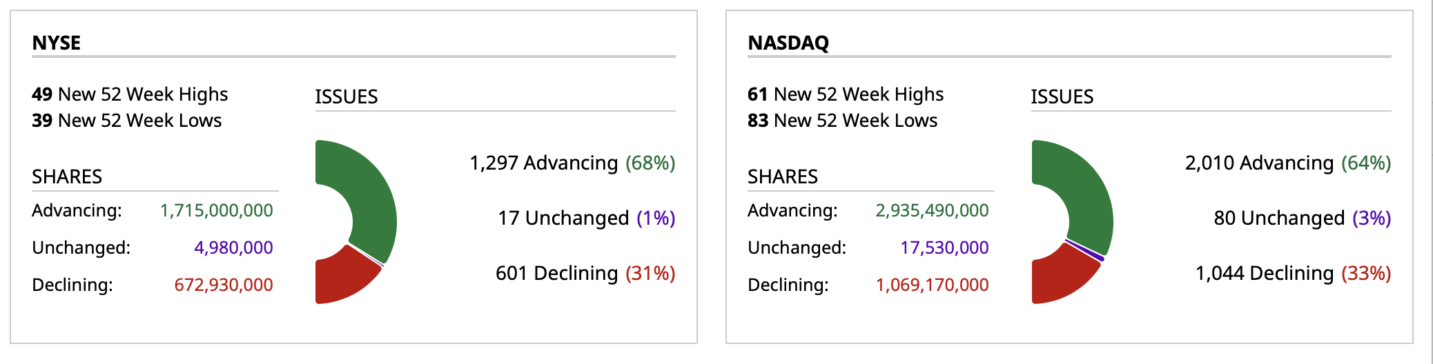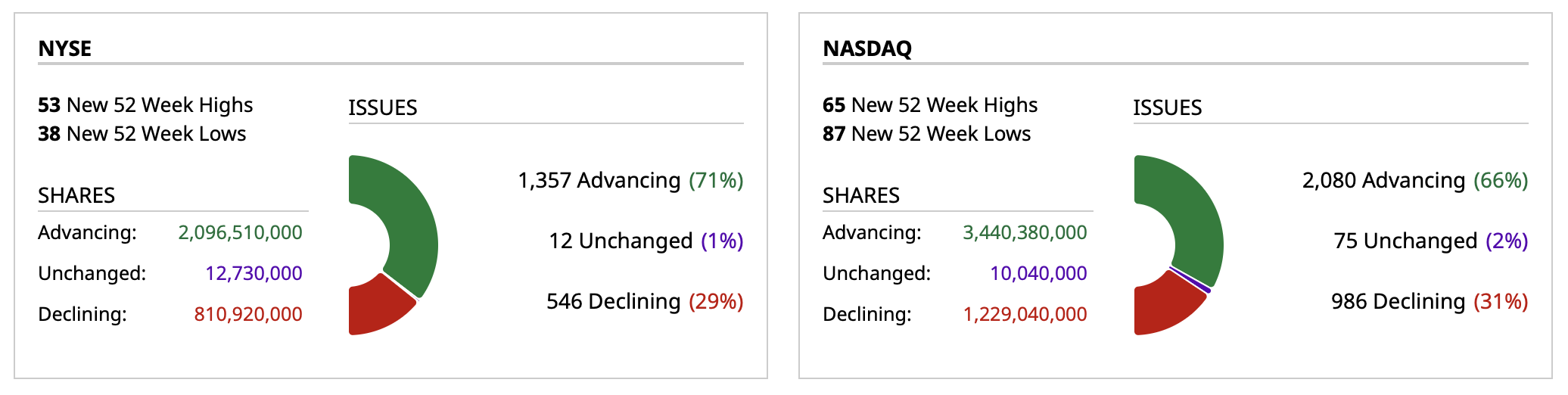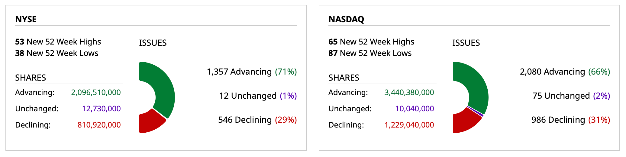 - NASDAQ volume 31% below its one-month average