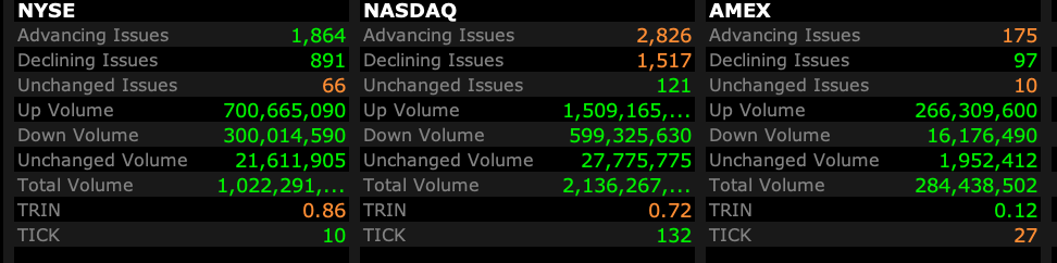 Breadth is improved today, at about 2-1 advancers over decliners: