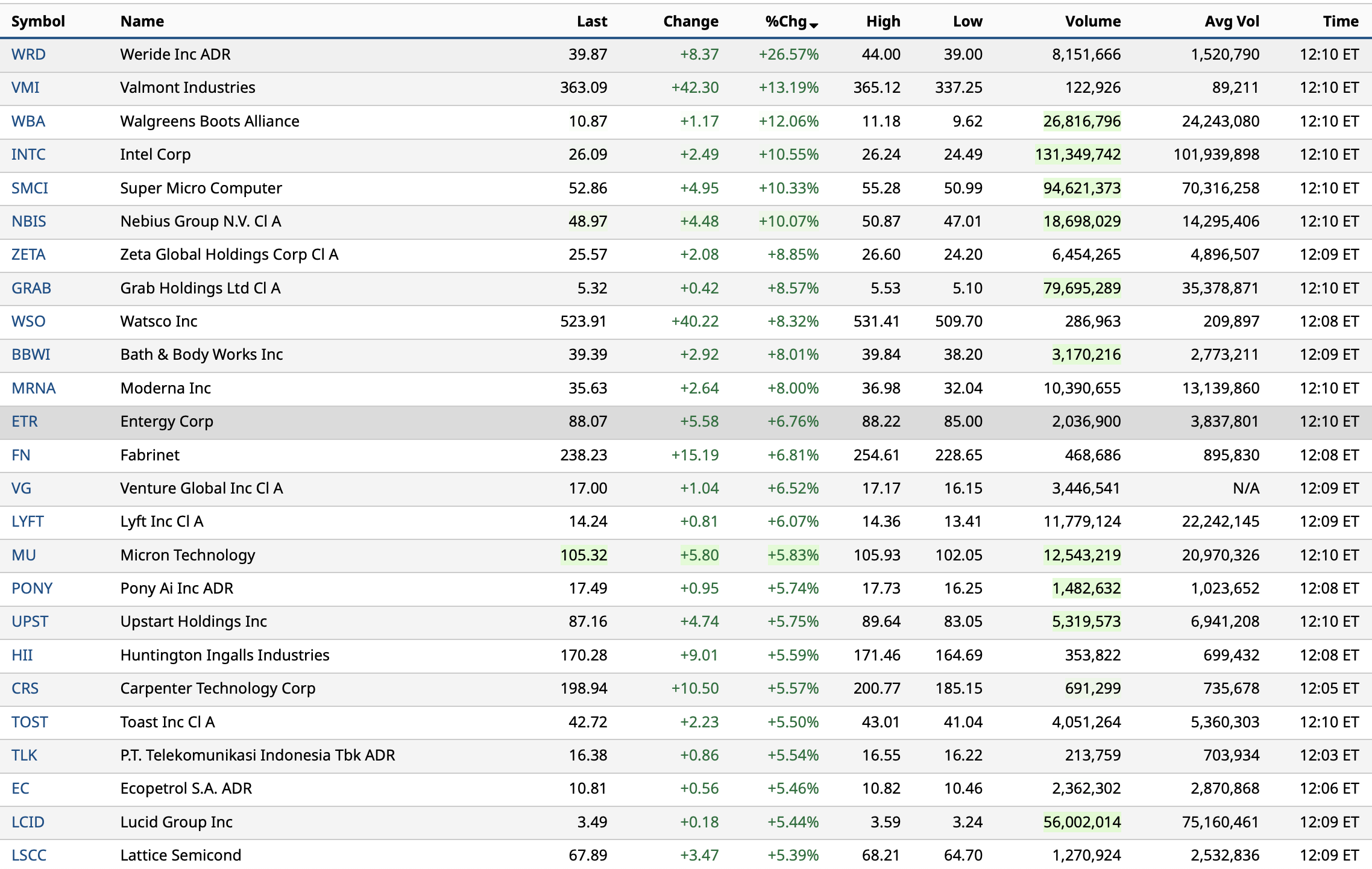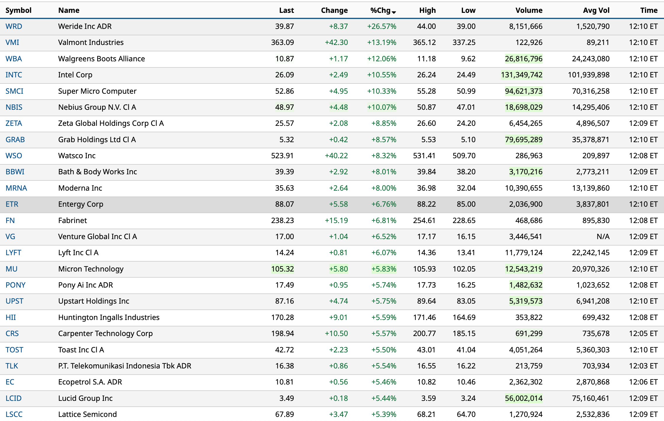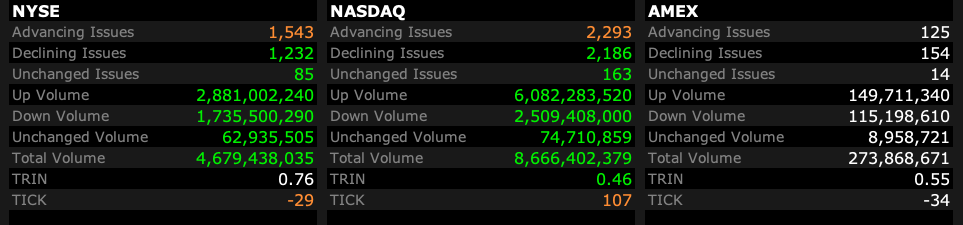- NASDAQ volume 12% above its one-month average