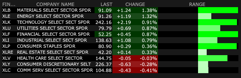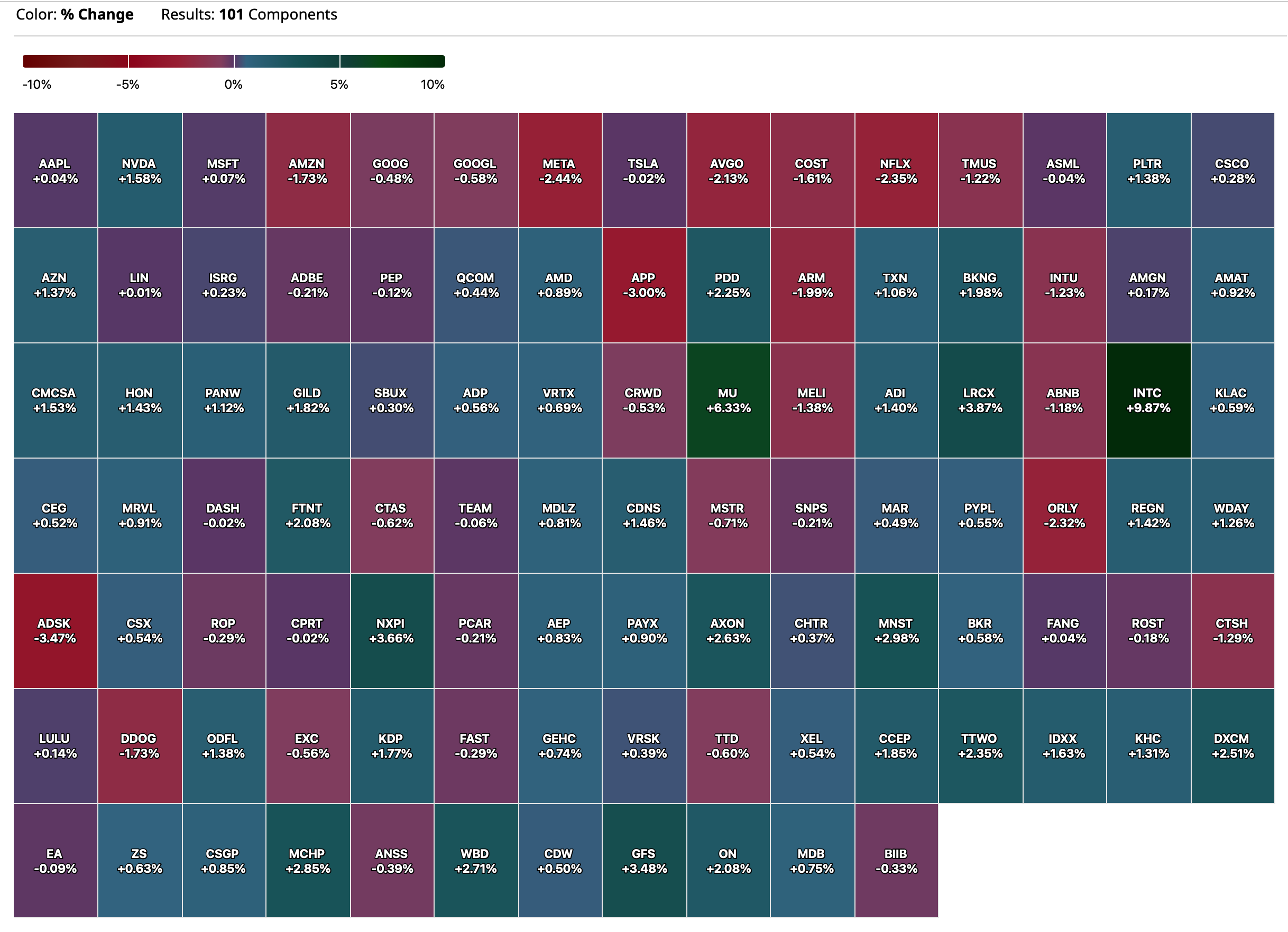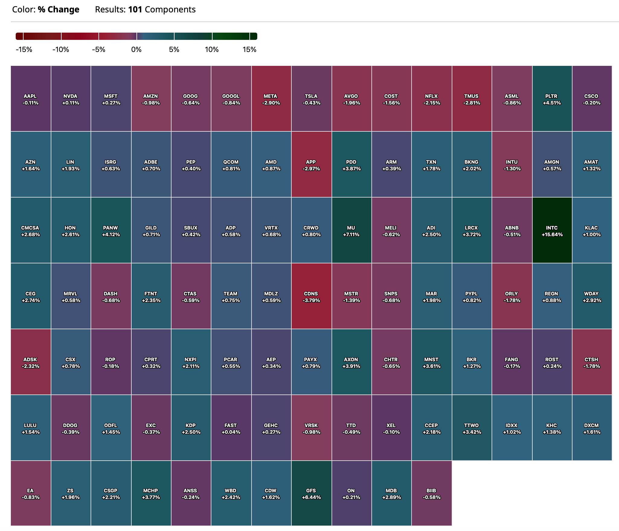 - VIX: down 0.07% to 15.37