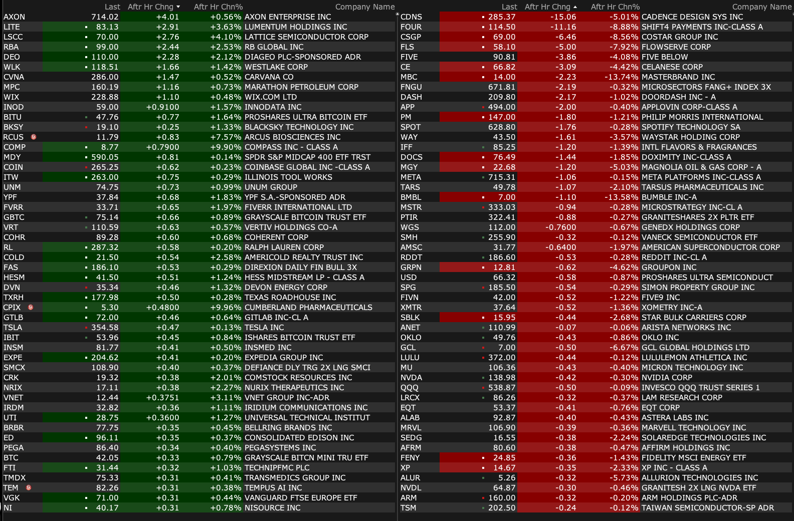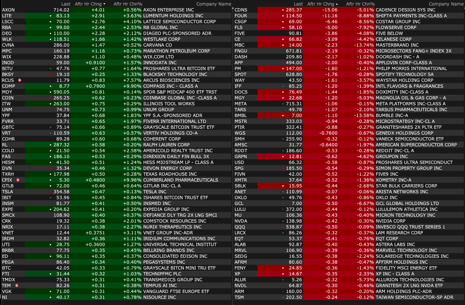 Tuesday's After-Hours Movers