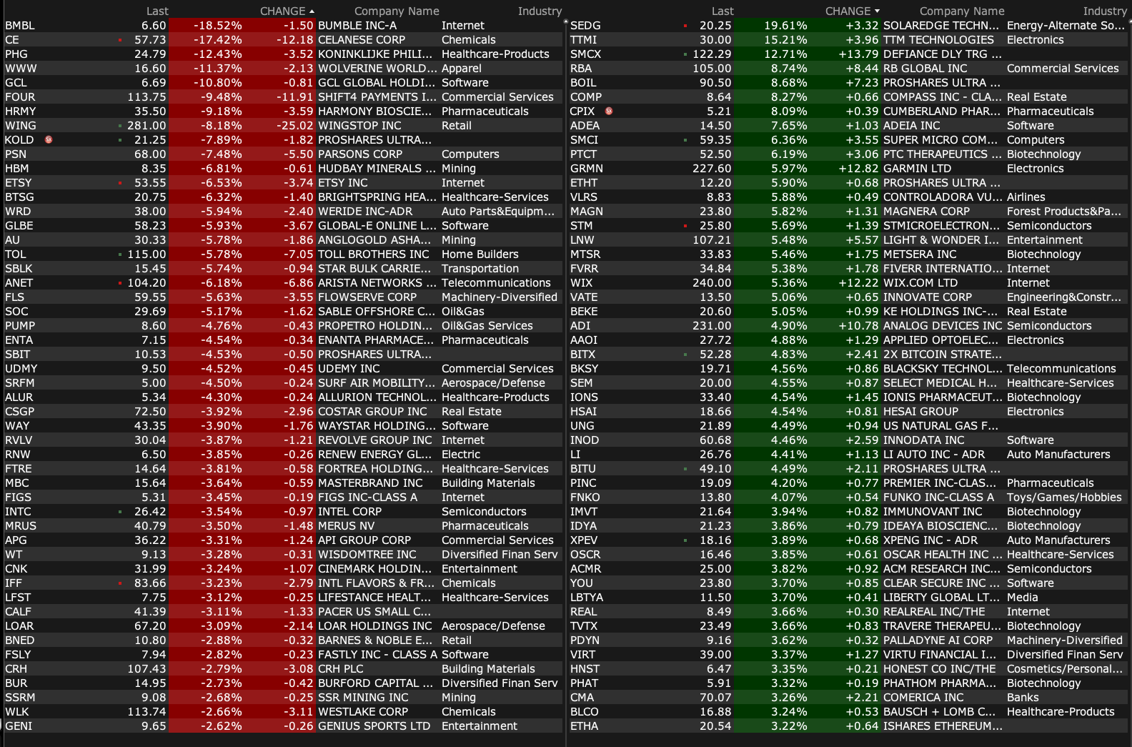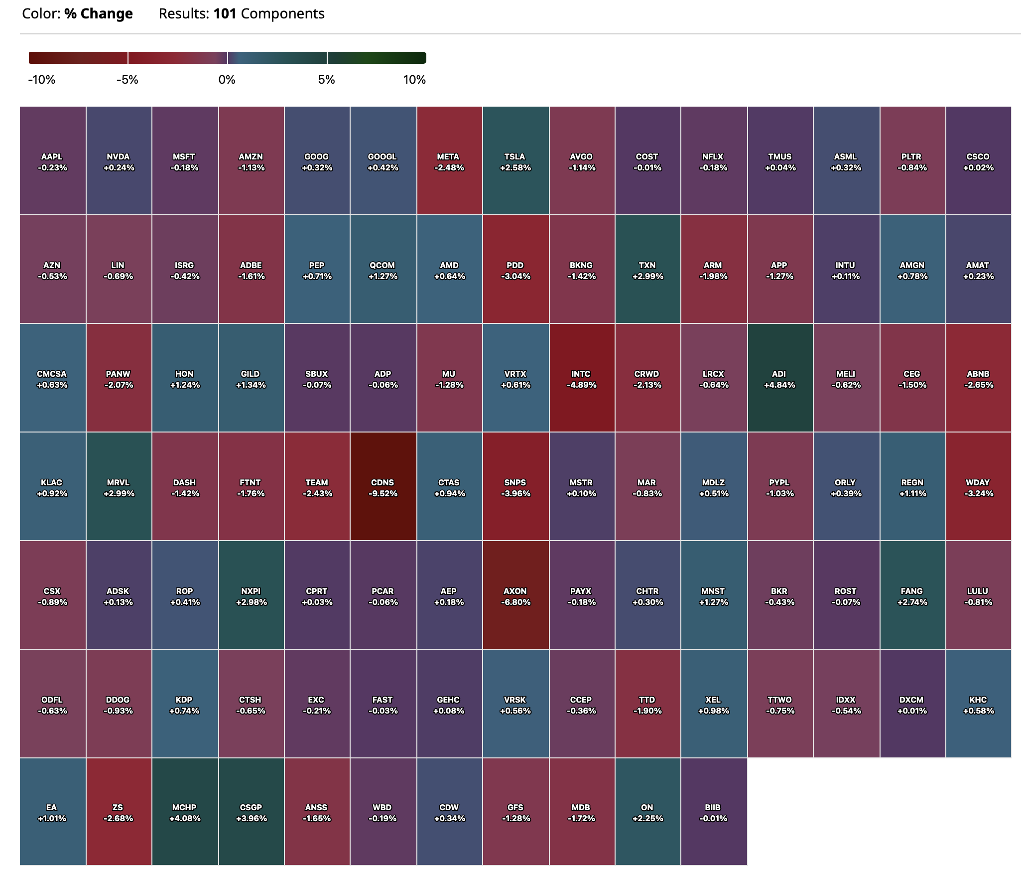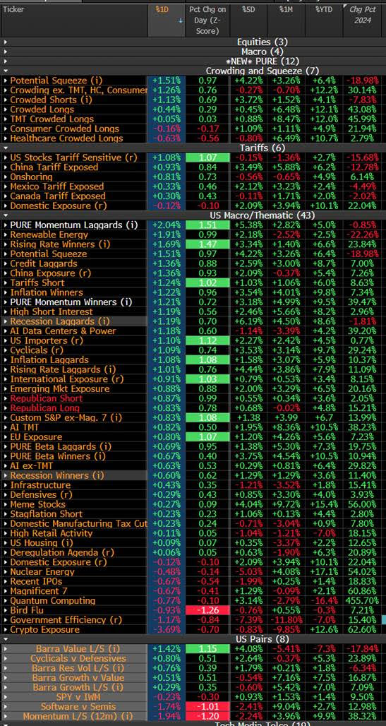 EQUITY AND MACRO NARRATIVE: Yesterday, was a quiet start to the holiday-shortened week. Stocks closed higher with RTY leading and NDX lagging. 70% of SPX stocks closed higher with major underperformers coming from Mag 7 (MTA -2.8%, AMZN -0.9%). JPM TMT trader Stuart Humphrey tells us that: “While we have not seen any supply [of MegaCap Tech] here, we've seen some covering/outright demand in other parts of TMT - we have seen LO demand in Semicaps (which have been most recently a relative short on China exposure), as well as some buying in higher-quality large cap software (have seen this demand here all year), and honestly have been better to buy in most semis ex-AVGO. For what it's worth this seems to be a consistent theme across the street per our conversations.”