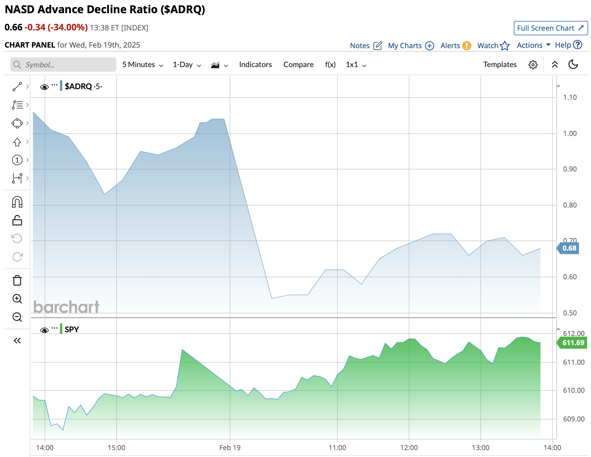 However, the advance/decline line is lackluster despite the rally off of the lows: