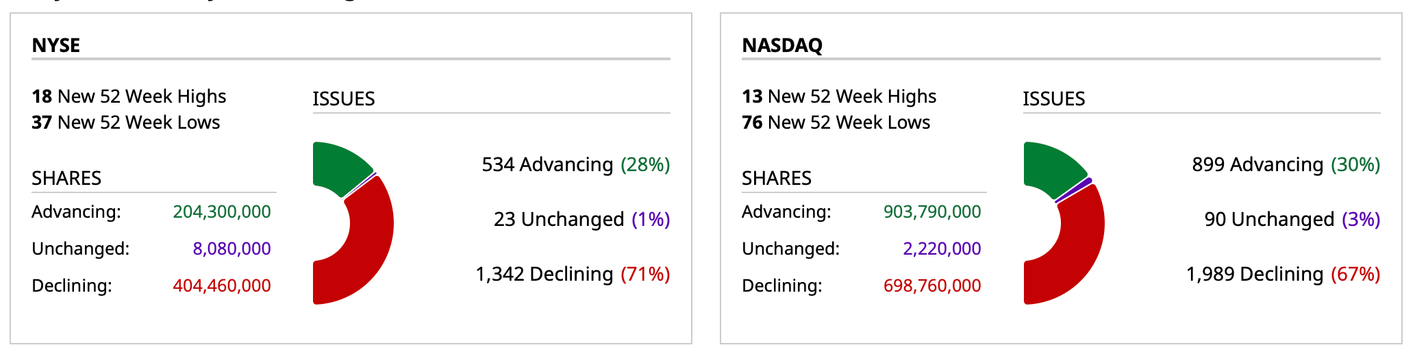 - NASDAQ volume 3% below its one-month average