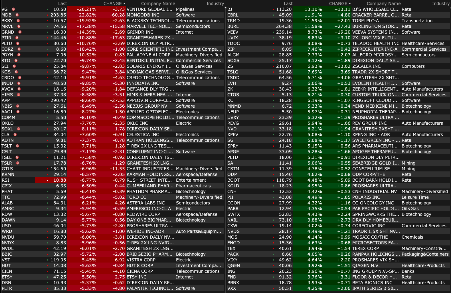 -MRVL -18% (earnings, guidance)