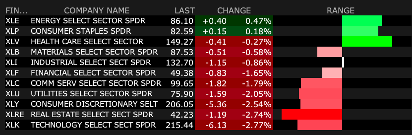 Indeed, many energy stocks (like OXY, XOM, CVX, SLB, etc.) fell through the bottom of their recent trading ranges and have broken down conspicuously in trading yesterday.