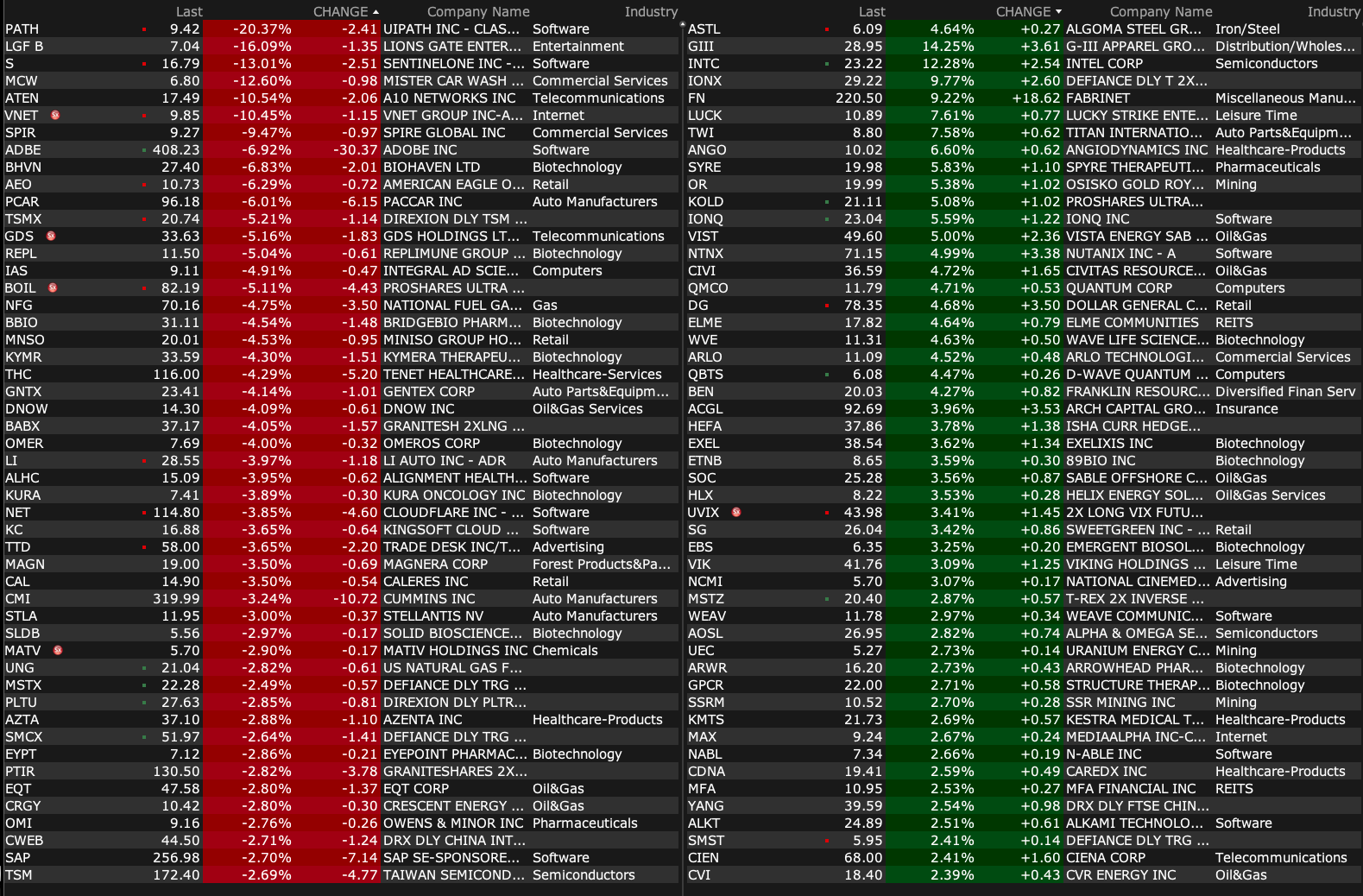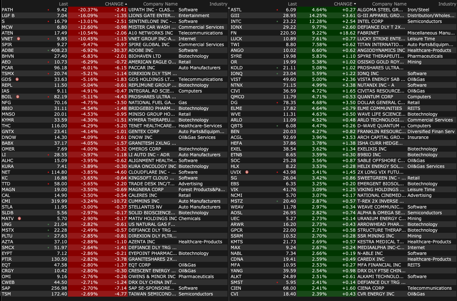 -INTC +11% (appoints Lip-Bu Tan as Chief Executive Officer, effective immediately; Tier1 firm Raised INTC to Neutral from Underperform, price target: $25 from $19)