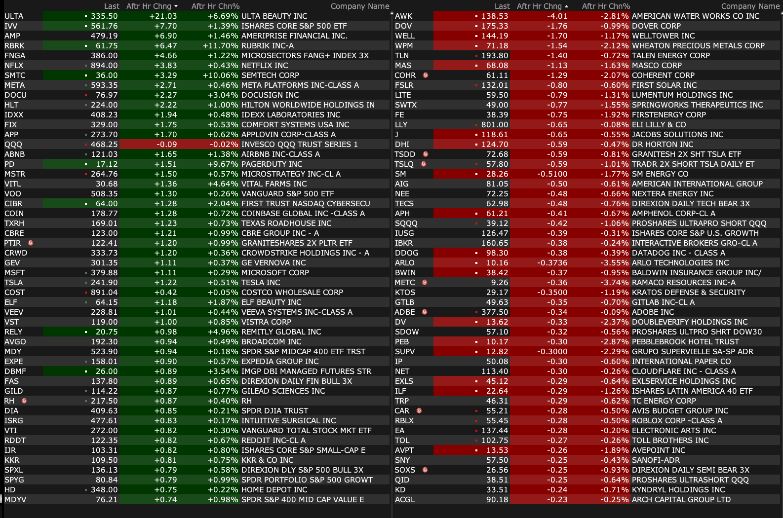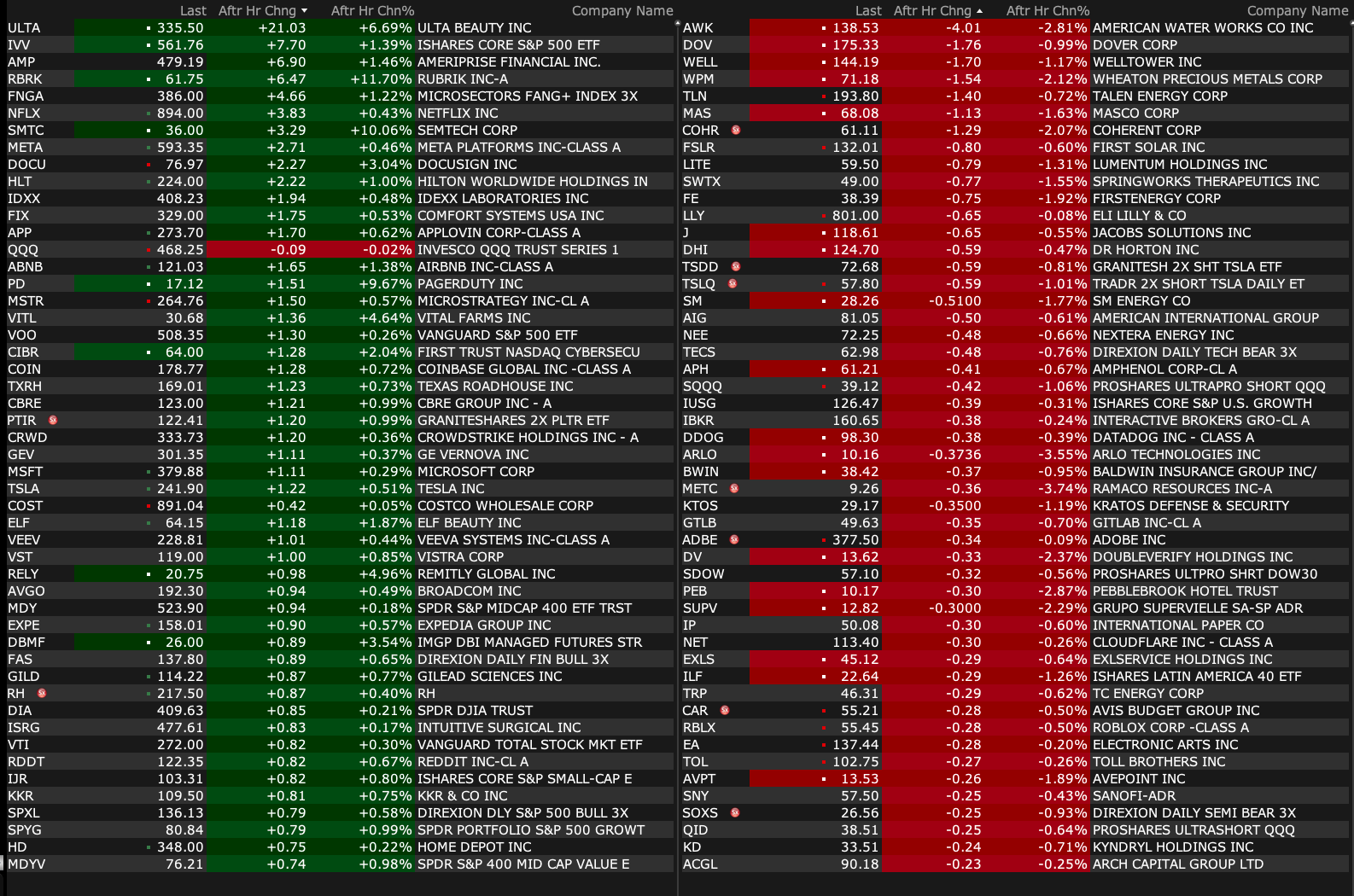 Thursday After-Hours Movers