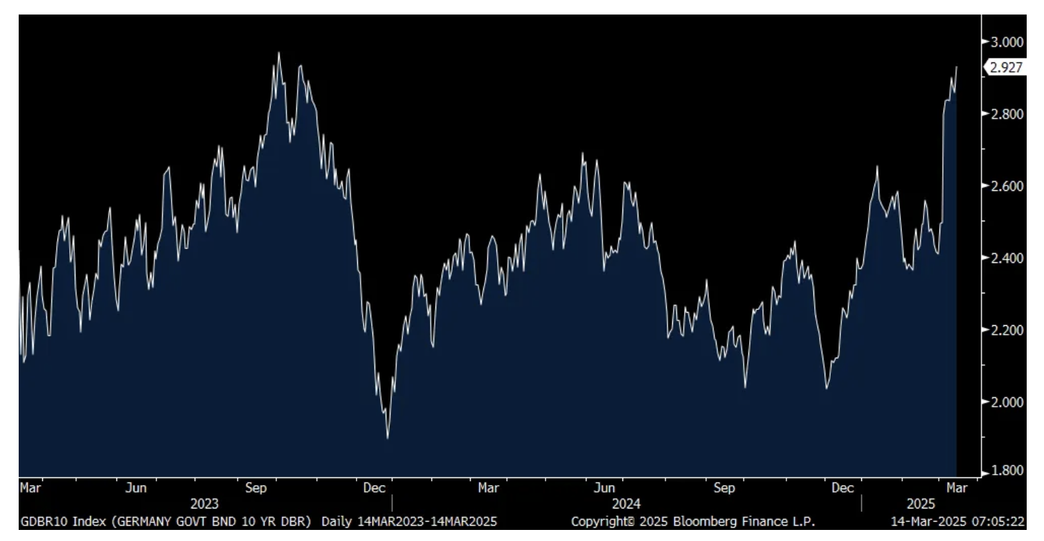 European bond yields are higher again across the region with the German 10 yr bund yield in particular rising by another 7 bps to 2.92%, the highest since October 2023. The reason today is that it looks like the new Merz government has made a deal with the Green party (the one holdout) to implement his fiscal plan. The euro is higher as well as is the DAX which is up 15% year to date.