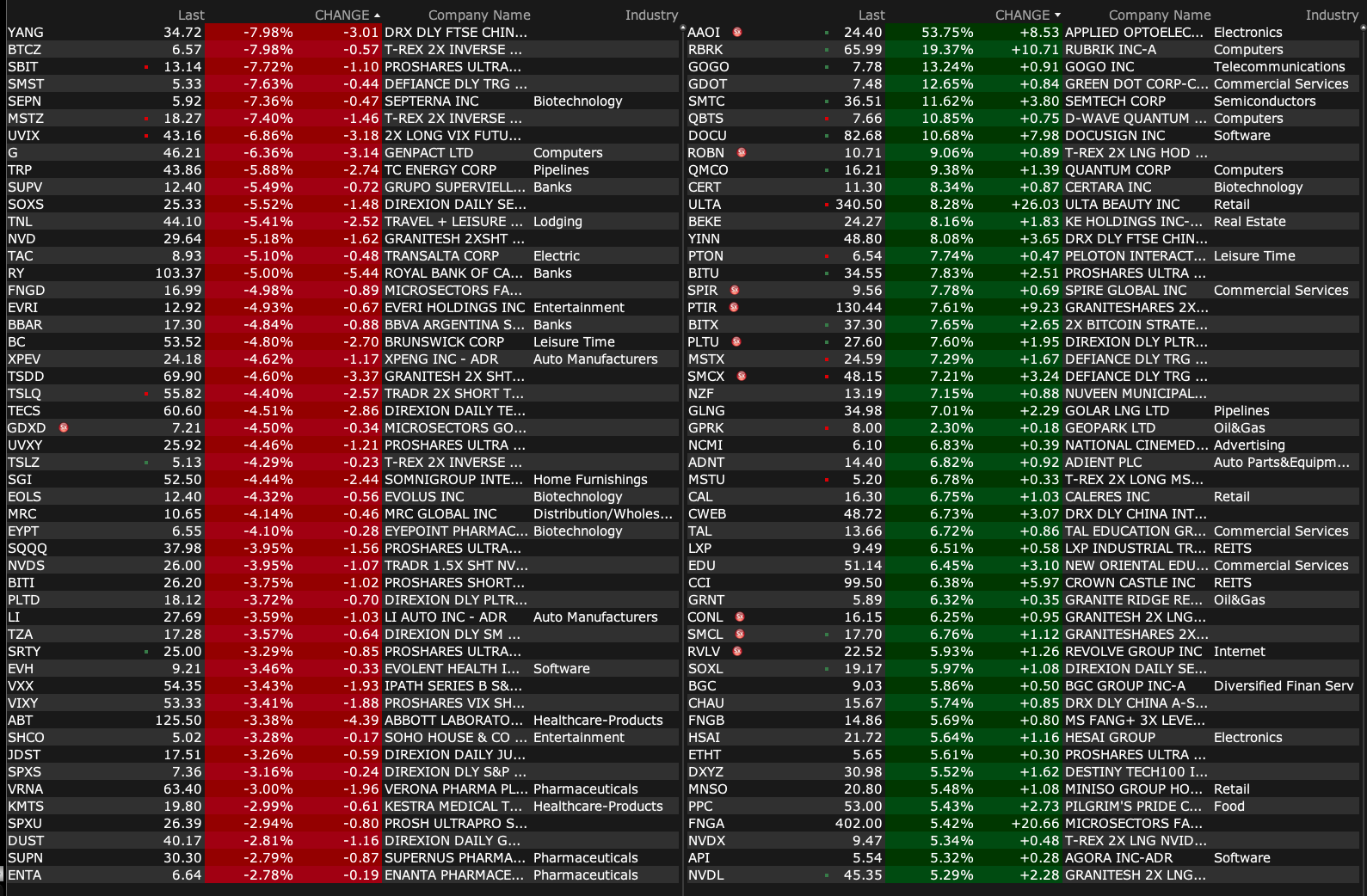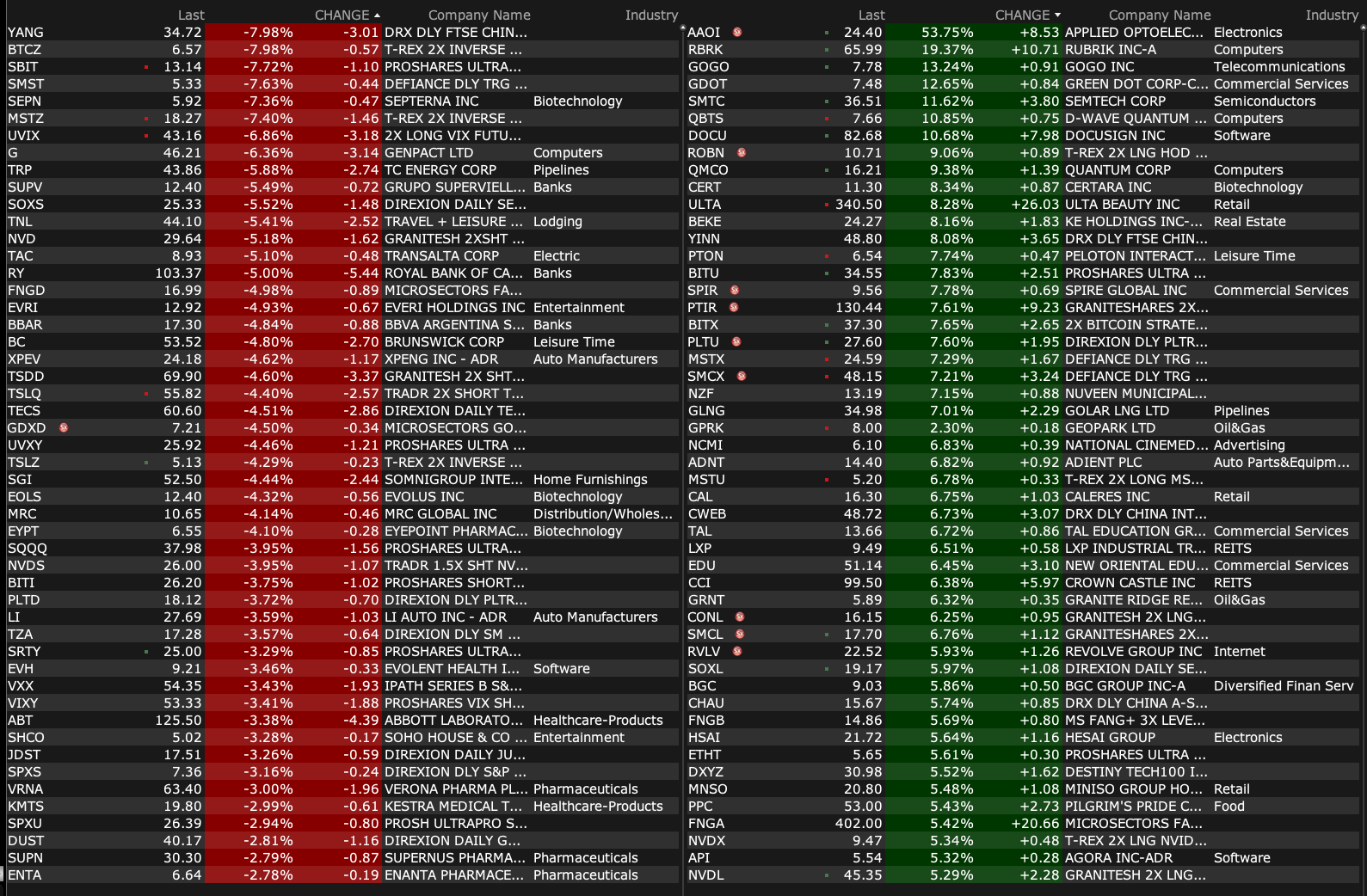 -AAOI +53% (entered warrant transaction agreement with Amazon to purchase up to 7.9M shares)