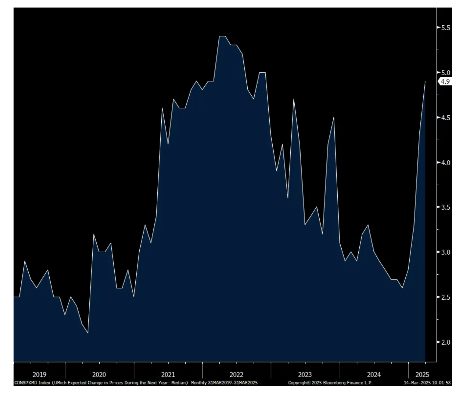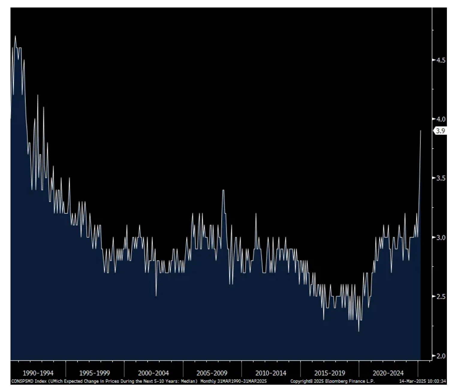Yes, politics are an influence here (the world is upside down as Dems hate tariffs/taxes but Repubs are fine with them) but a very stagflationary outlook/mood