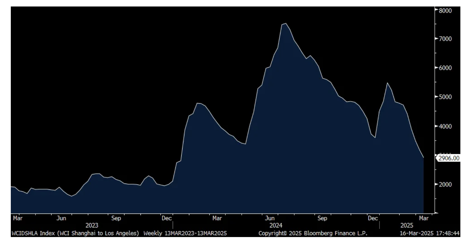With the US bombing the Houthi's in an attempt to finally destroy their strangle hold on the Red Sea, here was an update from last week's World Container Index. The Shanghai to Rotterdam route fell in price to the lowest level since late December 2023 at $2,512 for a 40 foot container. The Shanghai to LA trip is down to $2,906, the cheapest since early January. So, for the following weeks/quarters, either we've destroyed their capabilities or this situation gets more messy.