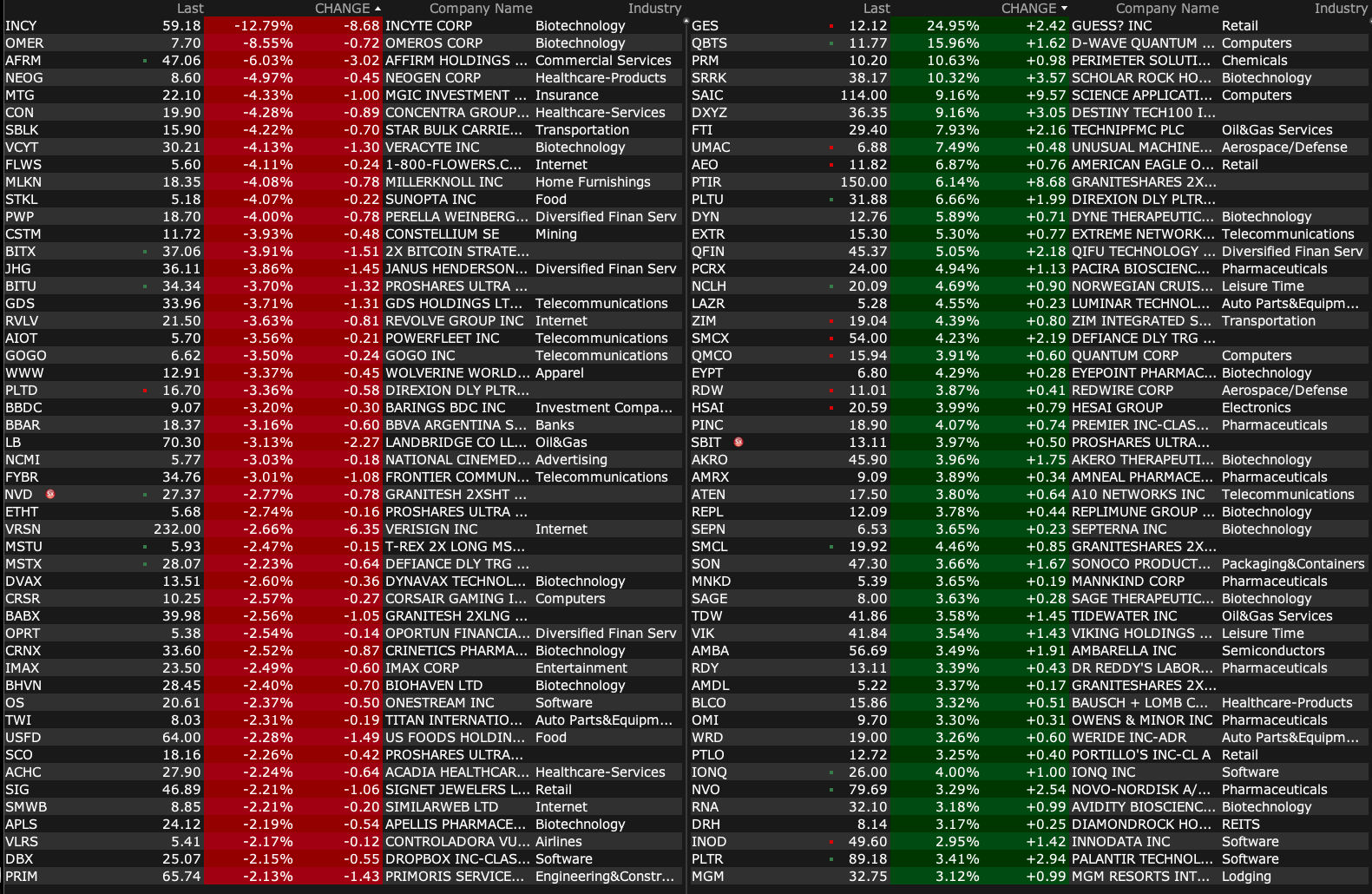 -INCY -15% (weakness following Phase 3 STOP-HS clinical trial data)