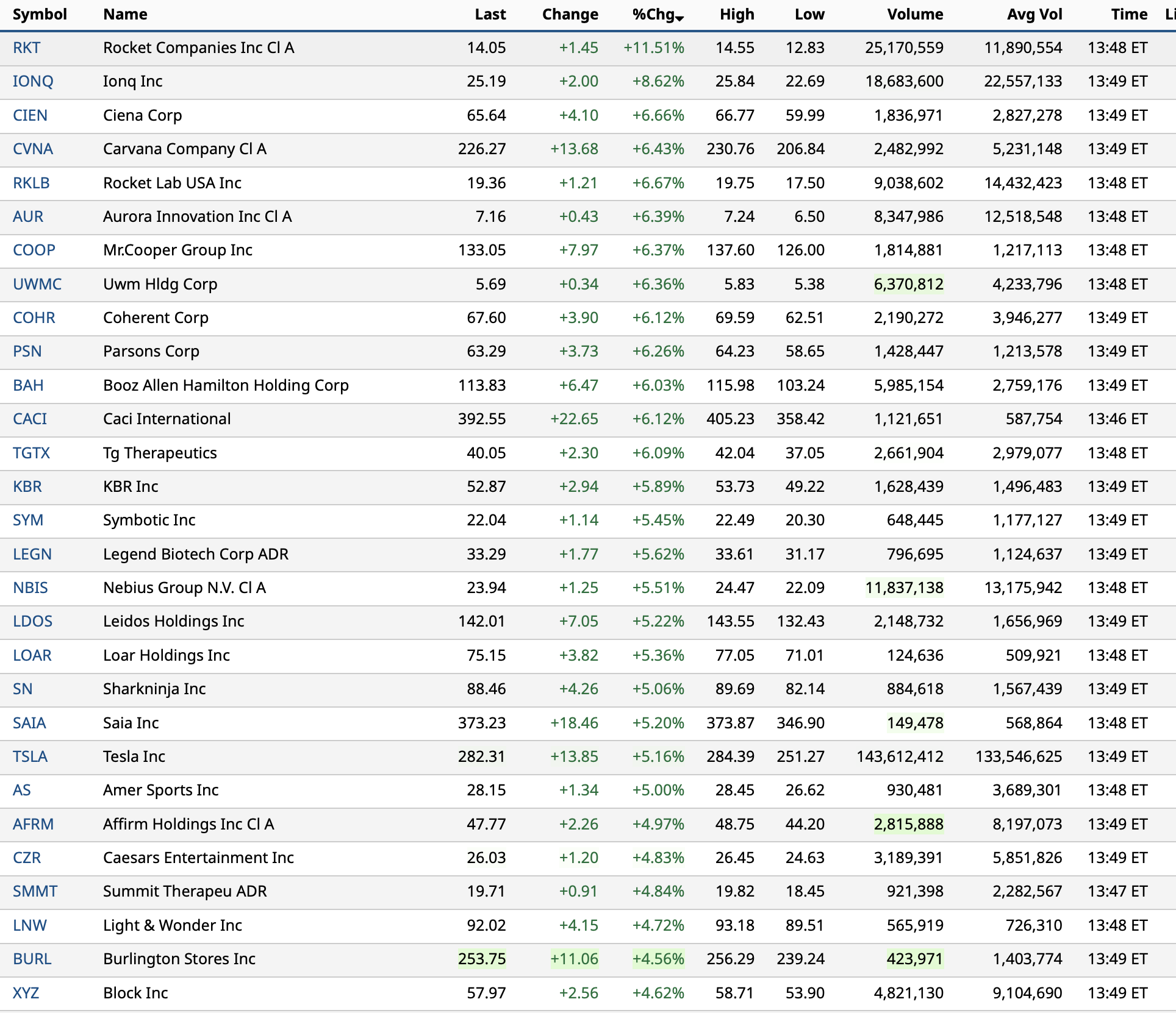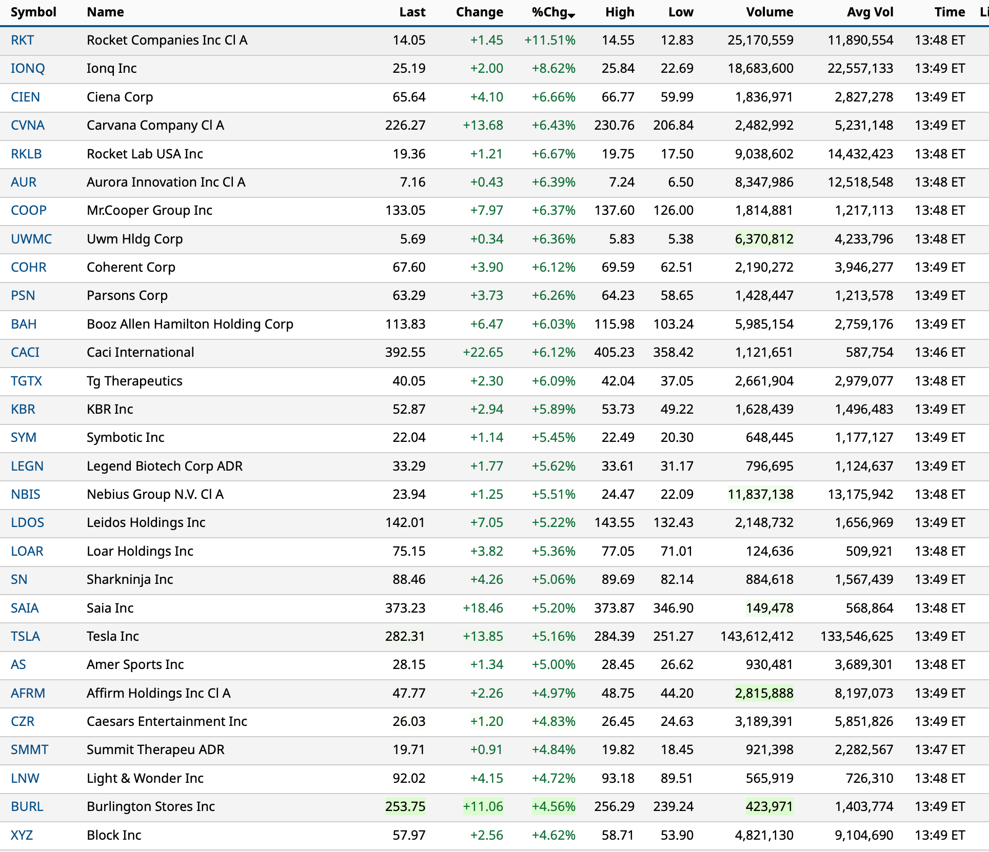 - NASDAQ volume 28% above its one-month average